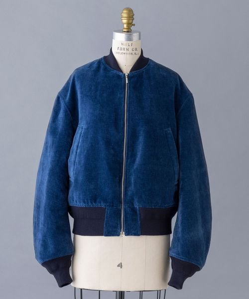 落ち着いた表情のベルベット素材がポイントのジップブルゾン