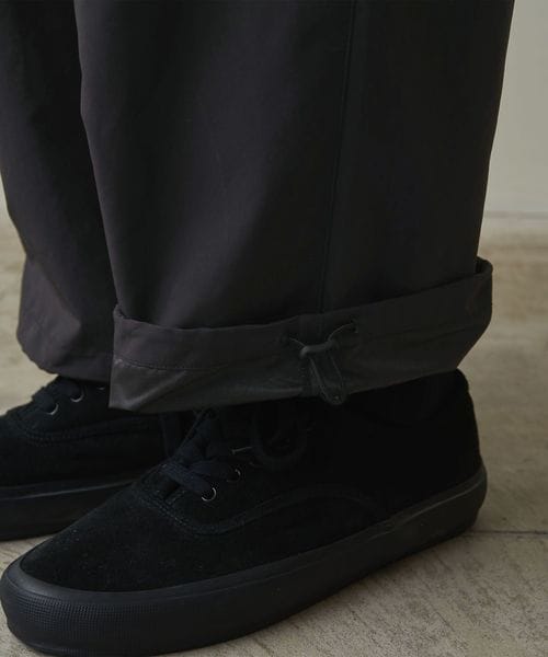 ミリタリーのスノーカモパンツをもとに、ブラックカラーでモダンにアップデートしたイージーパンツ。
