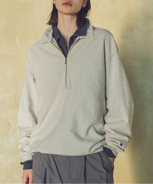 毎シーズン人気の<Champion>とのコラボレーションから新作のハーフジップポロシャツが登場