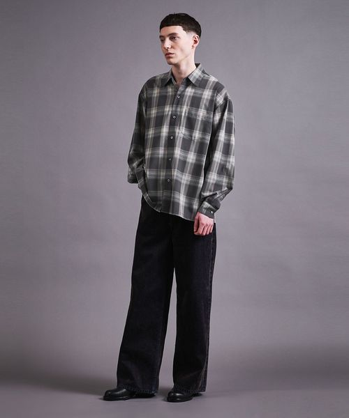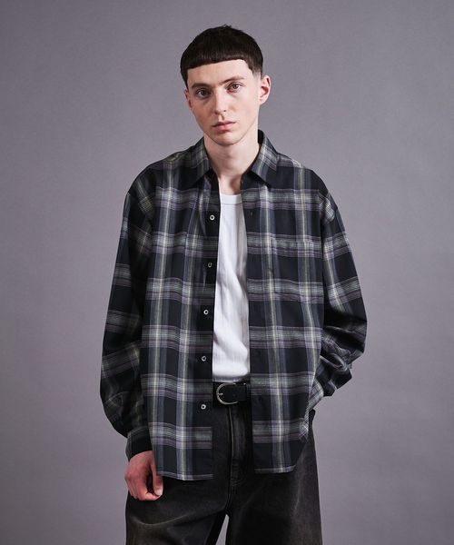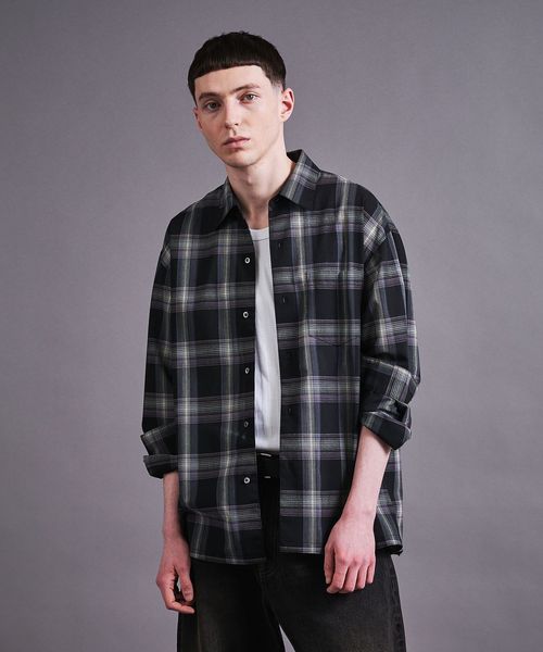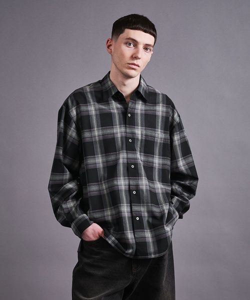 程よいワイドシルエットのレギュラーカラーシャツ。