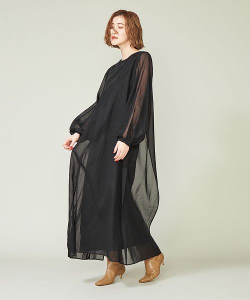 シアー素材を使用した一枚で様になる2重仕立てのロングワンピース。