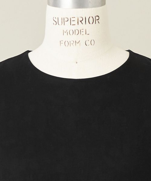 身頃は別生地をつけて2枚重ねに、袖は1枚にすることで透け感にコントラストをつけたレイヤード風デザインのワンピース。