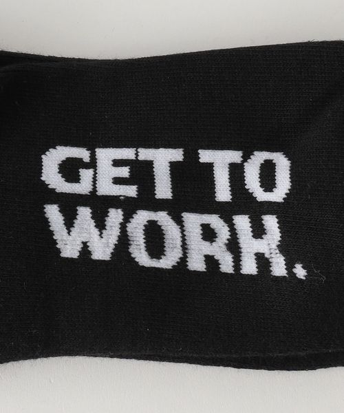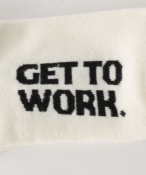 ブランドロゴ「Y,IWO」と「GET TO WORK.」ロゴがアクセントに。