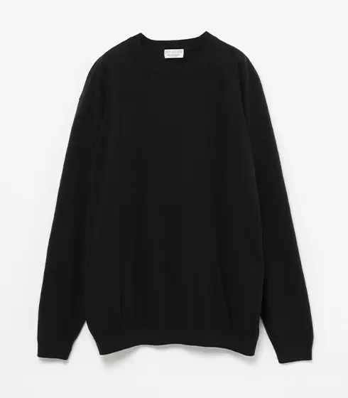 近頃はセレモニーもカジュアル傾向にある学校も多く、ノータイ派も増加。失礼のないVゾーンテクニックとして覚えておきたいのが、シャツ+クルーネックニットのレイヤード。Vゾーンをニットで埋めることで、ノータイで気になるカジュアル感をマイナス。キリッと引き締まった印象に。セットアップとニットは同系色でまとめたい。繊細な陰影を放つポリエステルベースの素材で、サラリと清涼感ある着心地が自慢。こんな方におすすめ