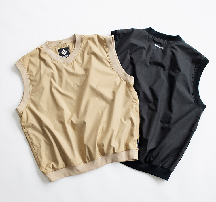 コートをクローゼットにしまい、今チャレンジしたいのはこんな遊び心のあるアイテム。過去にゴルフウェアとして発売していたベストを復刻別注し、従来はなかったサイドポケットを付けてアップデートした自信作。