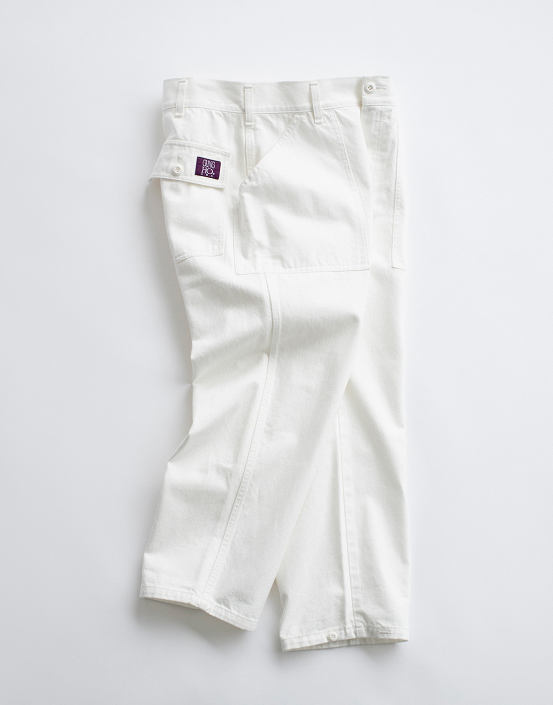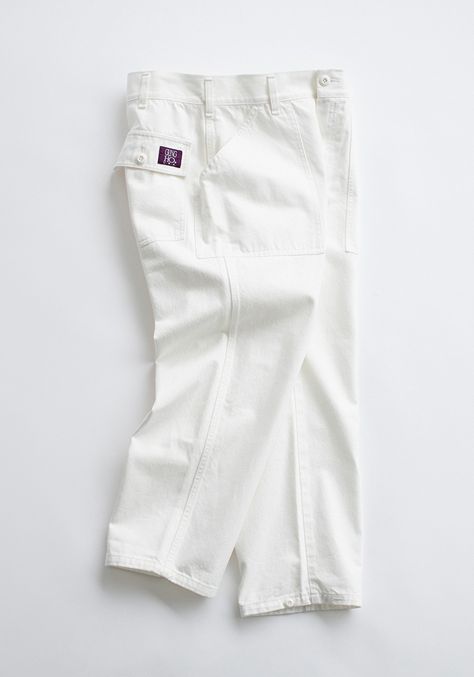 気の利いたディテールが、はく者を虜にするワイドテーパードのベイカーパンツ。洗いをかけて全体的に少しざらつきを感じる加工を施し、クリーンさを程よく削ぎ落とした、さり気ない工夫が光る一本。その凛とした佇まいが、自らの歩みに余韻を残していく。