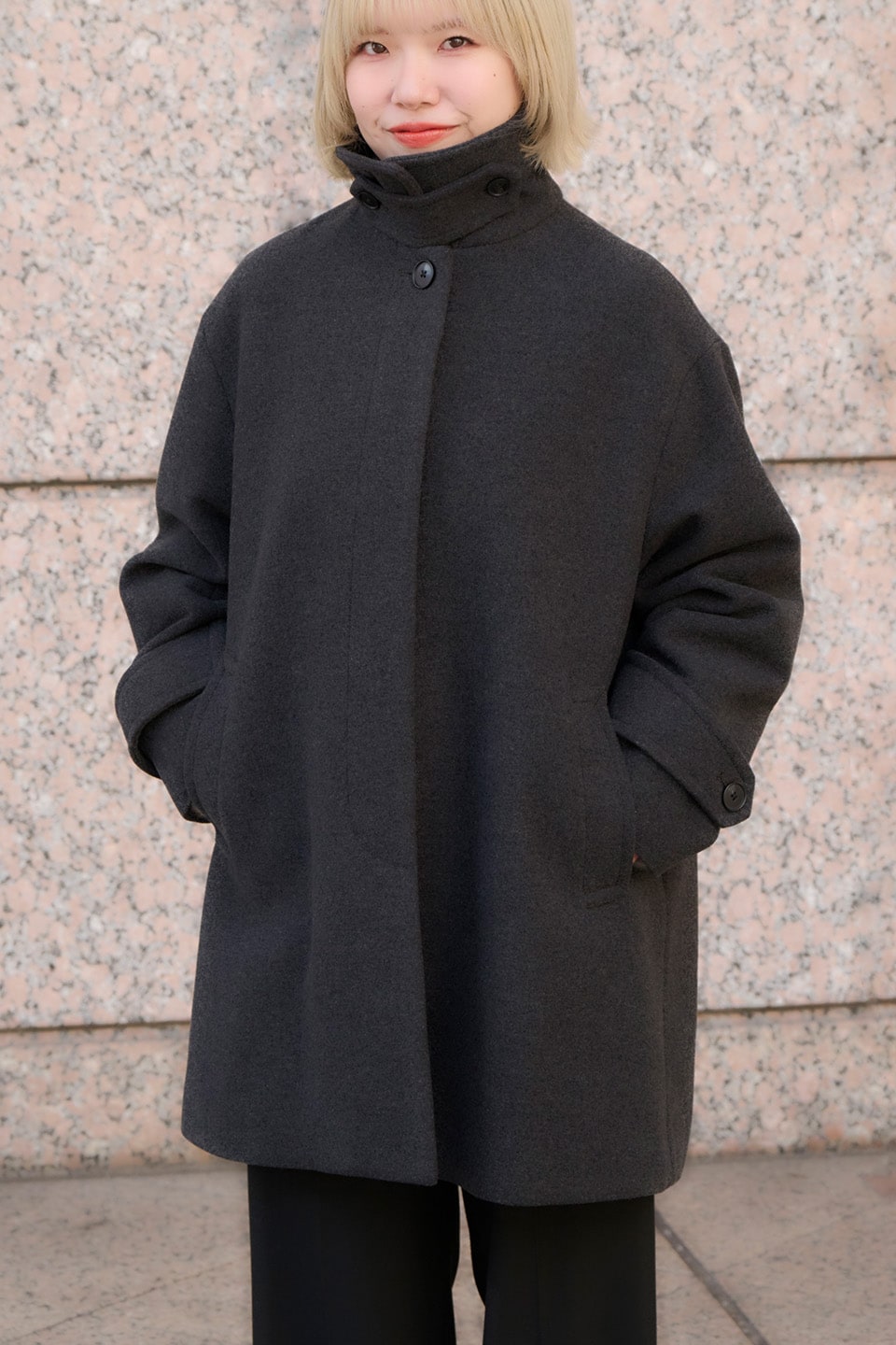 ステンカラーコート − ¥42,900 / 着用サイズ_ L