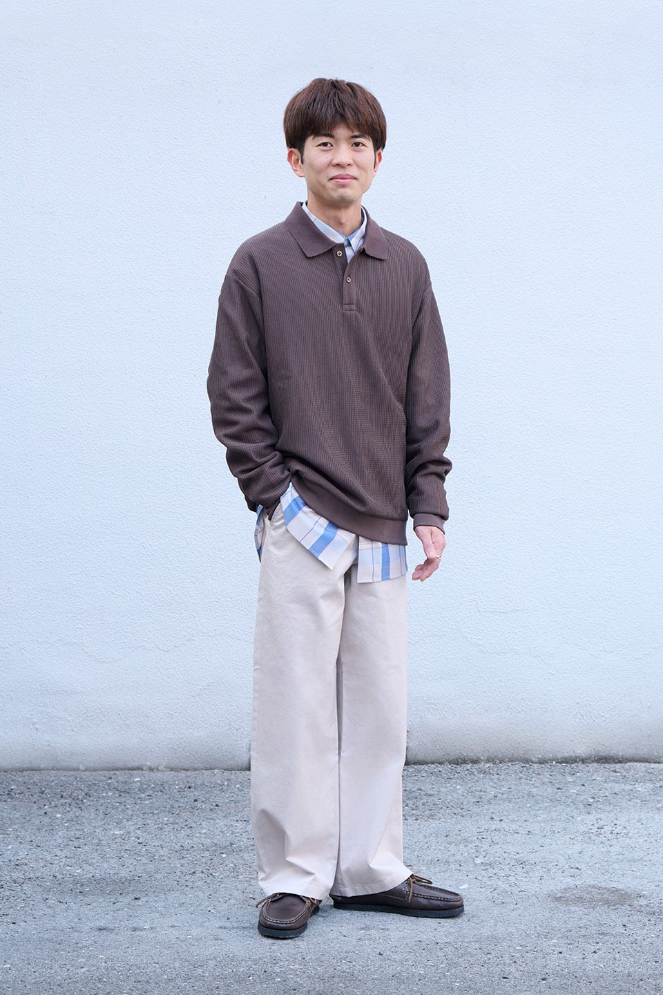 明るめのパンツで軽さをプラスしました。