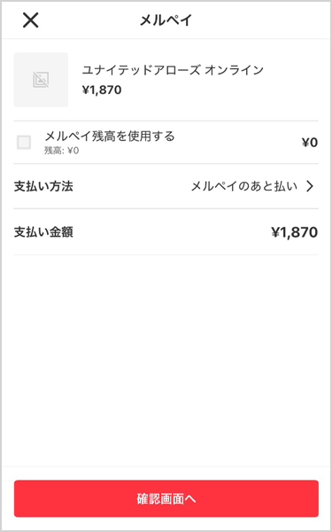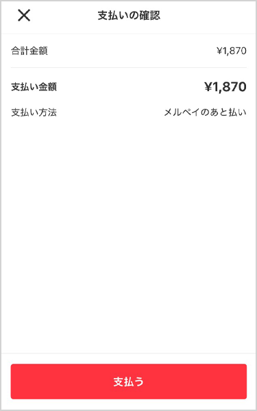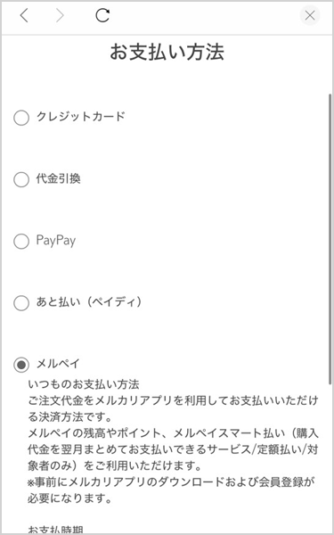 - ※お支払い後、注文完了画面が表示されるまでそのままお待ちください。メルペイの画面を閉じてしまうと、決済が失敗する場合がございます。