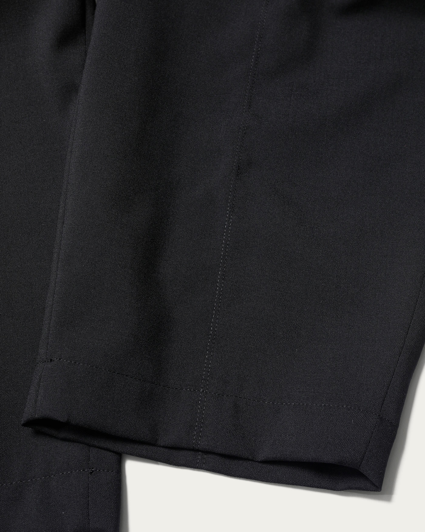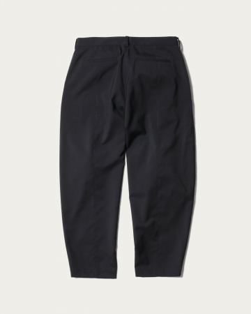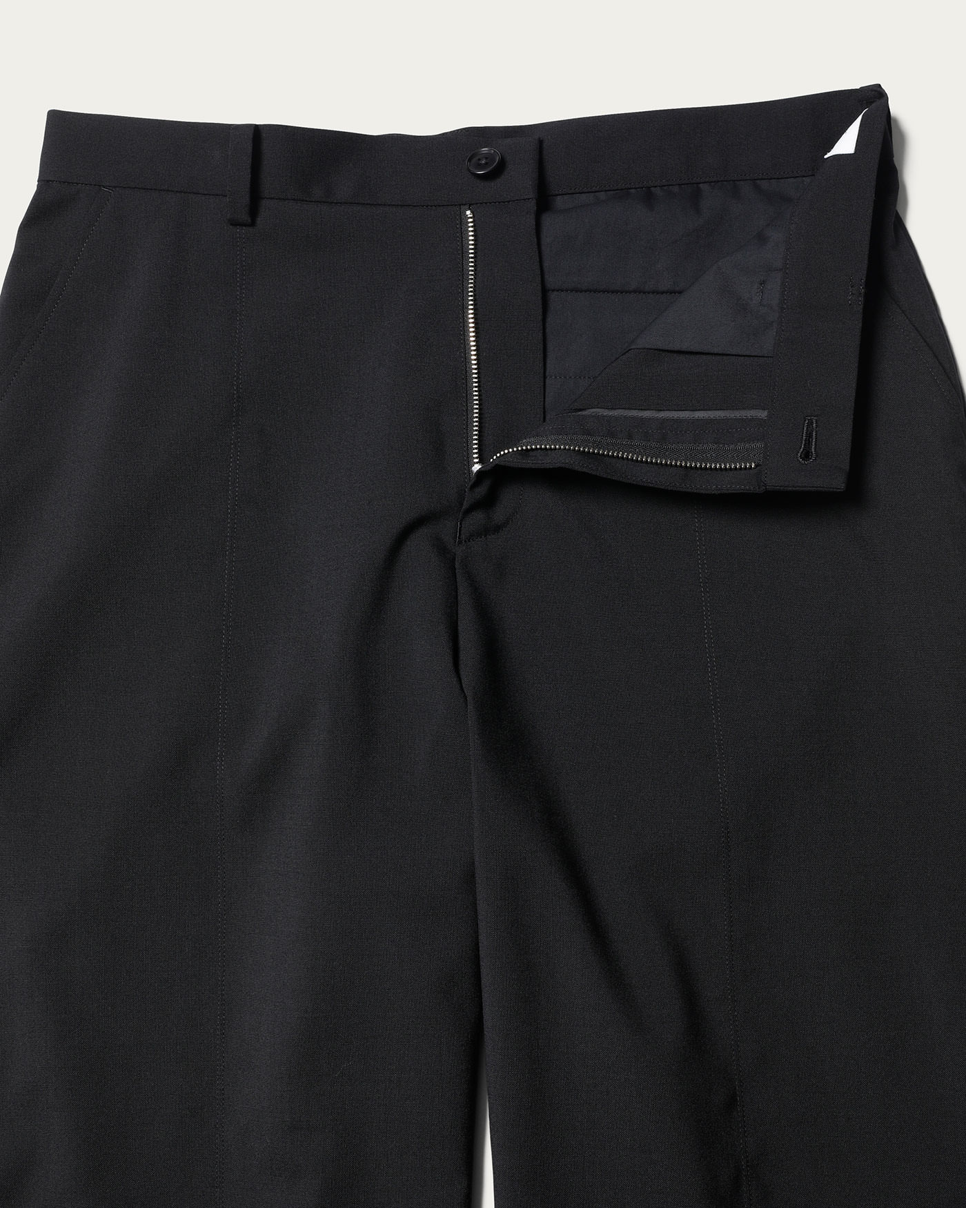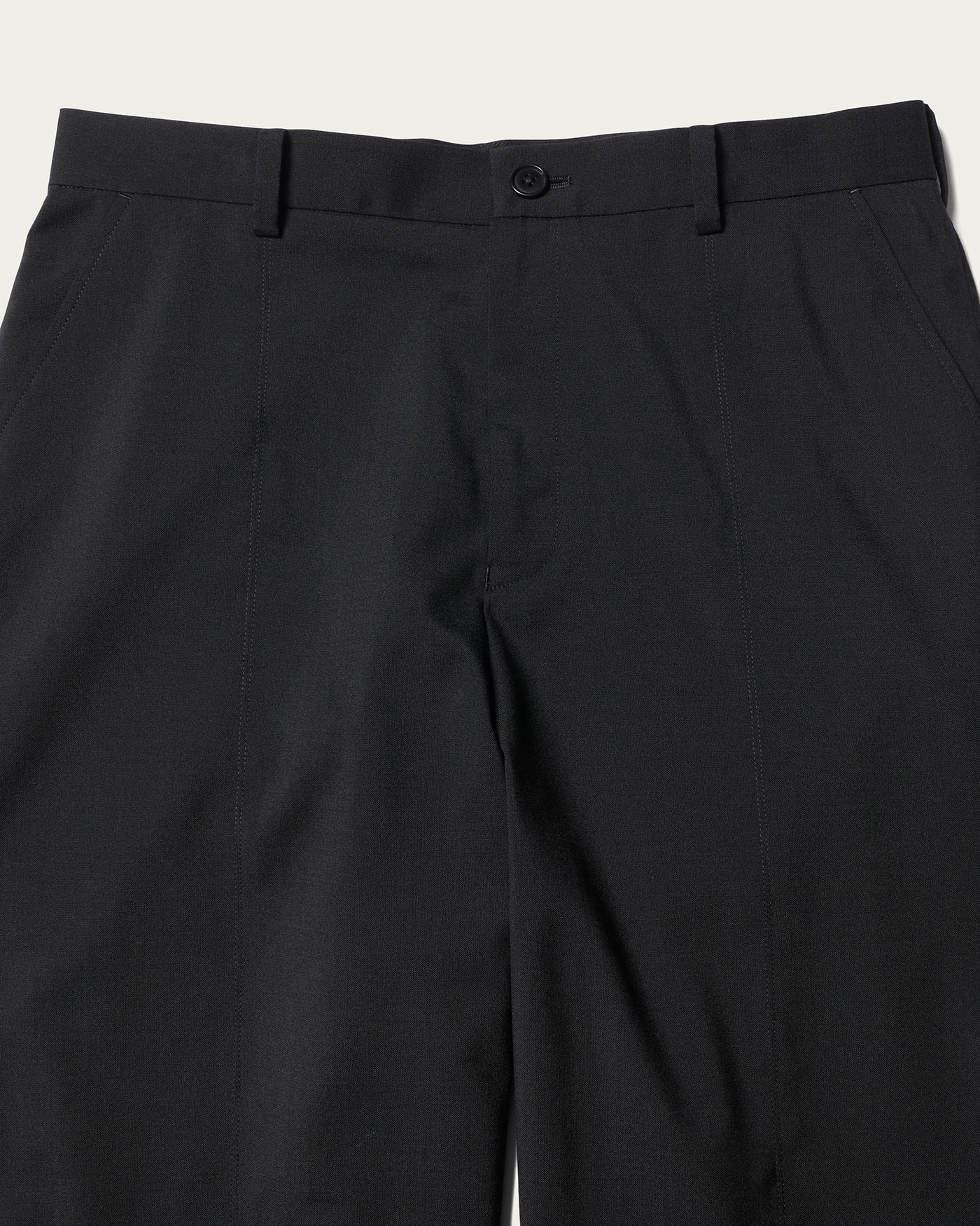 ポリエステル/ウールの素材を使用したパンツ。シルエットは適度に丸みがあるバルーンシルエット。前後に入ったカットとステッチが特徴です。