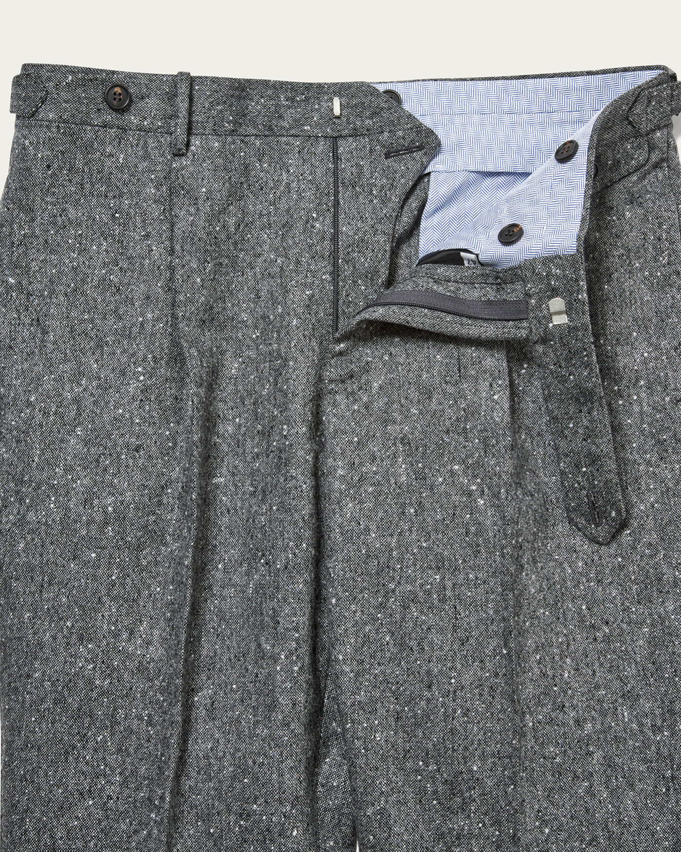 はっきりとしたホームスパン柄のトラウザーズ。やや肉厚のしっかりとした生地感が男らしい雰囲気を醸し出しています。サイドアジャスト仕様で腰回りがすっきりとした見た目になっています。