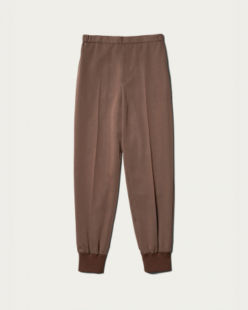 ヴィスコースポリエステルの程よい光沢感のあるツイル素材を使用したジョガーパンツ。メンズライクな素材感と、シャンブレーの深みのあるカラーがポイントです。同素材のシャツ(品番:1611-144-2234)と合わせてセットアップとしてもお楽しみいただけます。