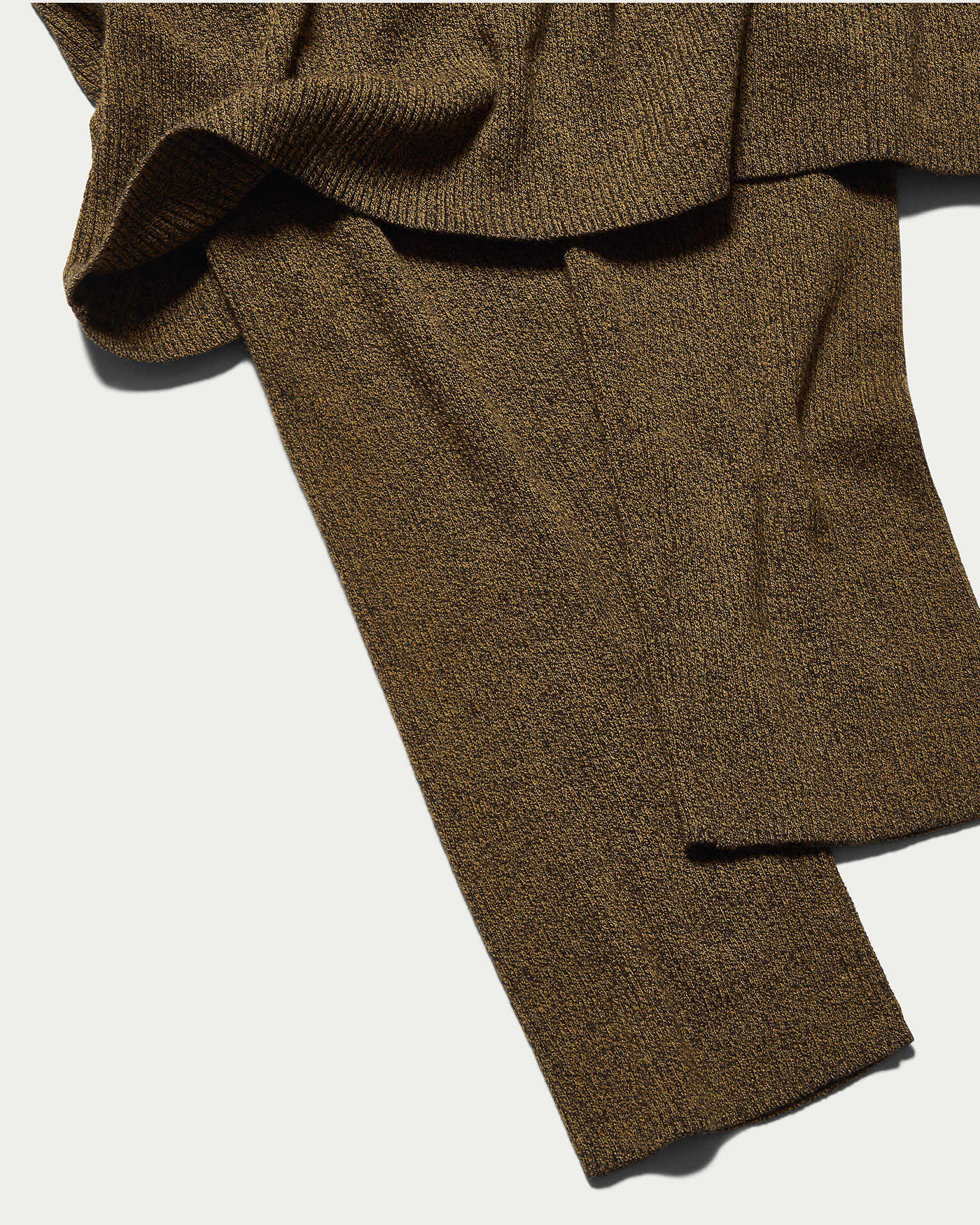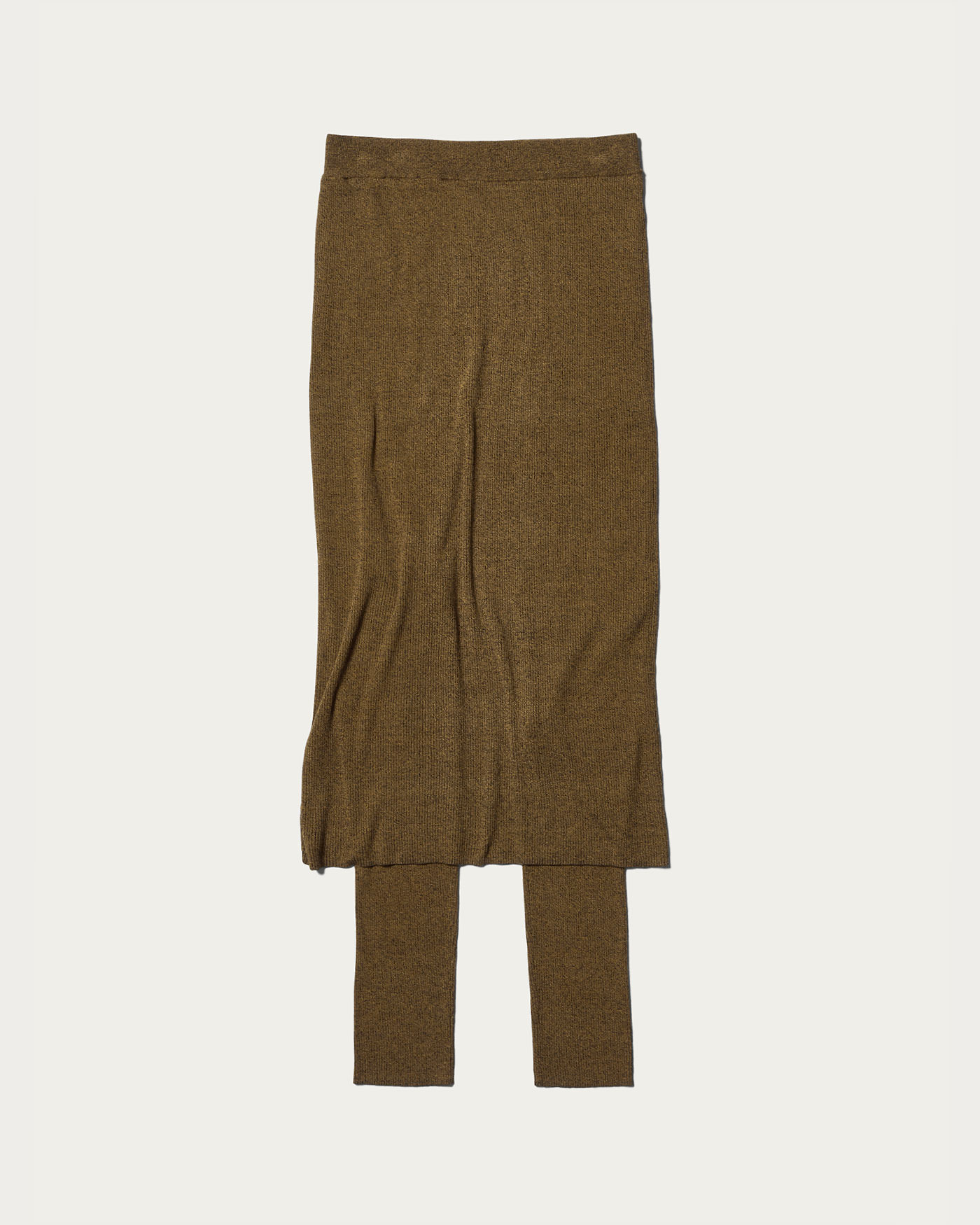 シャリ味と落ち感があり、肌触りと着用感がとても良い素材のスパッツ付きリブニットスカート。強撚タイプのコットンのため、ウエスト付け根部分でスカートとスパッツを一緒にリンキングしたことで、もたつきなくすっきりと着用いただけます。