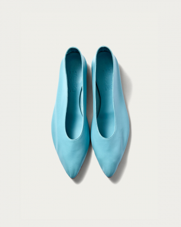 〈マルティニアーノ〉、ポインテッドトゥーモデルの「PARTY」。ヌーディなミィディアムブラウンとキャッチ-なターコイズの2色ご用意しております。