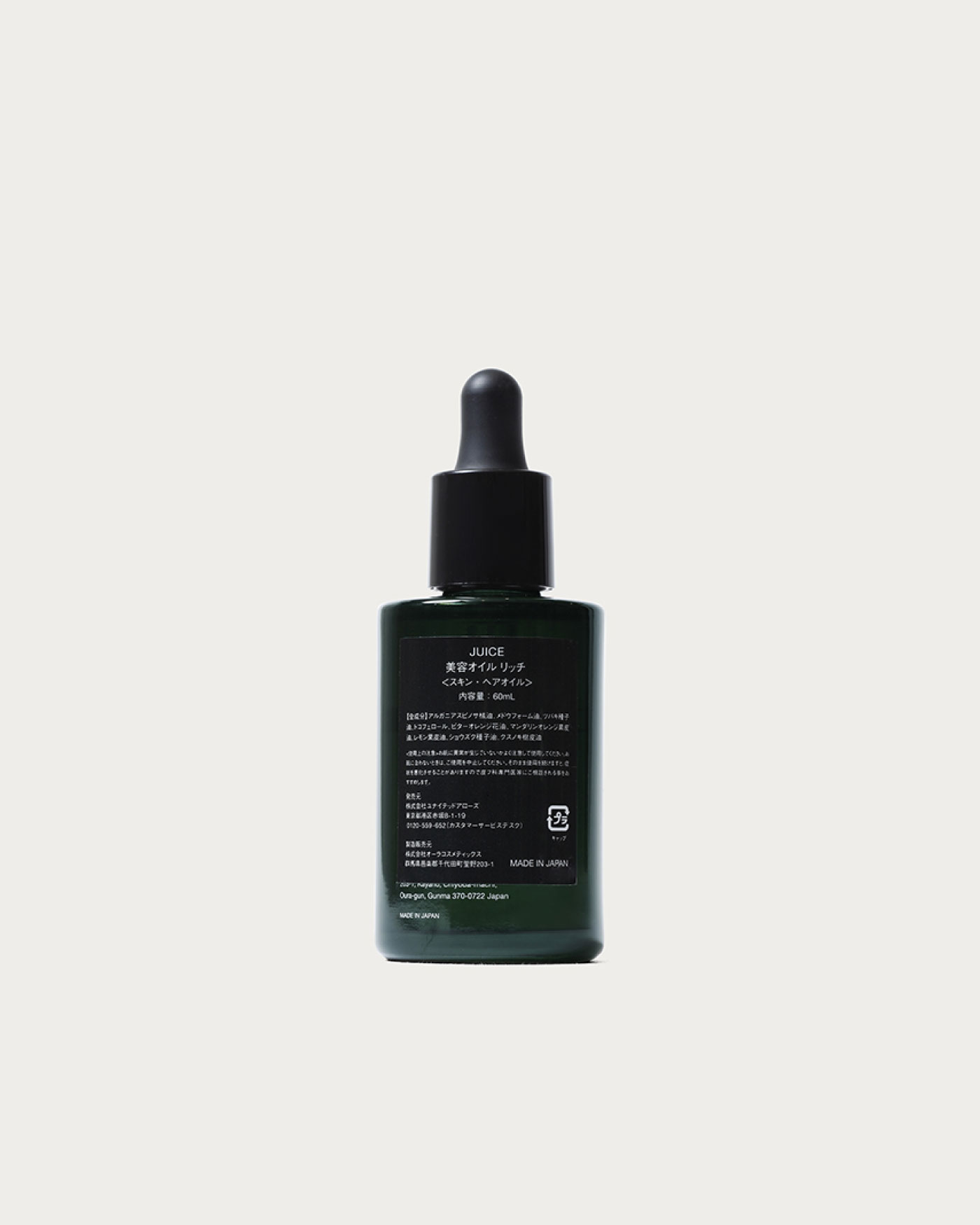ナチュラルな植物オイルと精油だけでできた、天然オイル。リッチな潤いを与える加唐島のヤブ椿オイル(ツバキ種子油)と、アルガンオイルを配合。コクのあるオイルが潤いのヴェールで肌を包み、弾力感とハリのあるしなやかな肌へ導きます。手応えのあるエイジングケア、乾燥が気になるところの集中ケアに。肌に吸いこまれていくような天然の植物オイルならではの贅沢な感覚も特徴です。フェイス、ボディ、ヘアにおすすめ。ビターシトラスのほのかな香り。