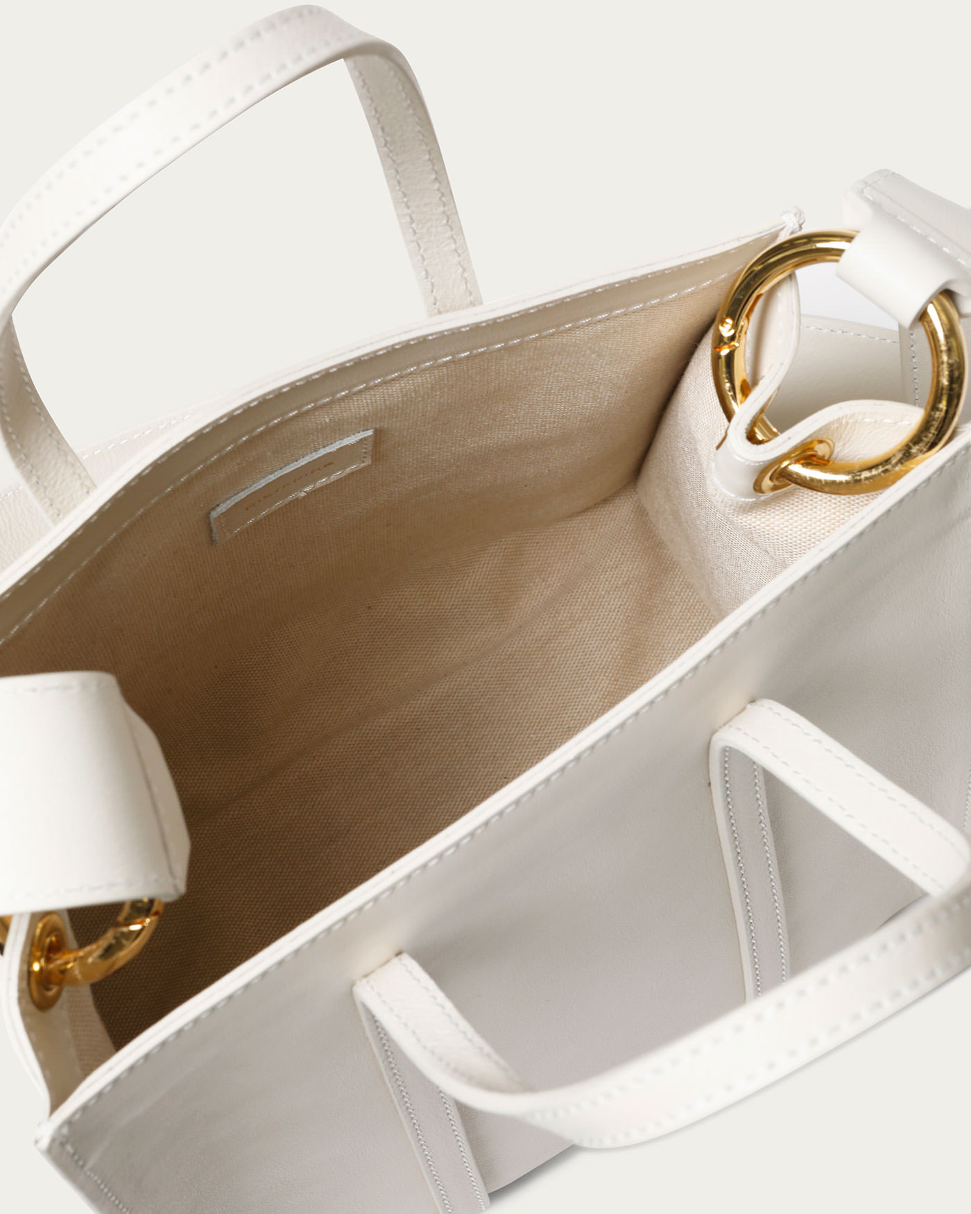 イタリア語で「詰め込む」を意味し女性の夢、希望、大切なものを詰め込んだ、いつもそばにいる「凛とした存在」でいたいという願いから2017年にスタートしたイタリア発の日本ブランド〈RIEMPIRE(リエンピーレ)〉。上品で長く持てるシンプルさが魅力的なトートバッグはショルダーストラップの幅を太めに変更した別注デザイン。コンパクトな見ためでもしっかり収納できるサイズ感で、リング金具が華やかさを演出。