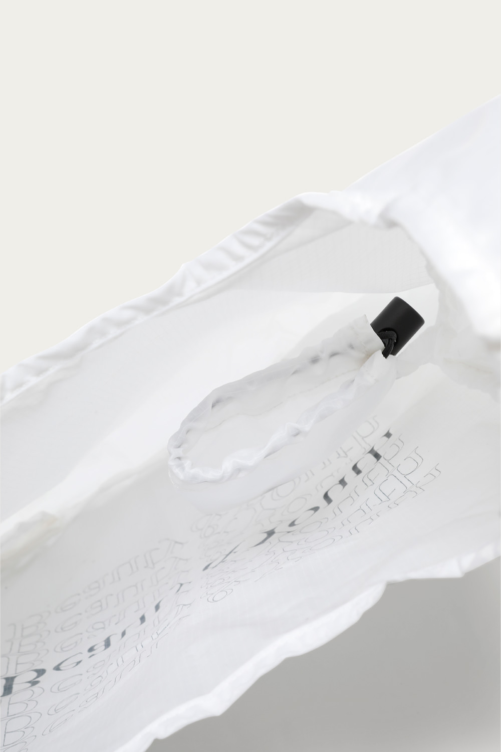 今シーズンより、新たにスーベニアシリーズとしてバックを制作しました。軽量なナイロン素材で、携帯しやすいサイズのパッカブル仕様。SとMの2サイズ、ホワイト×ブルー、ホワイト×ワイン、ブラック×ホワイトの3色展開。