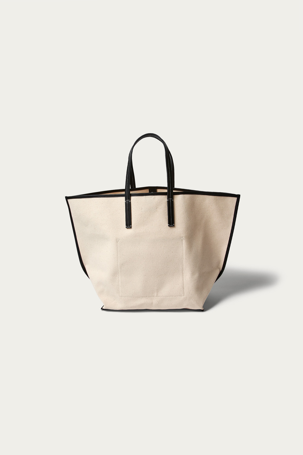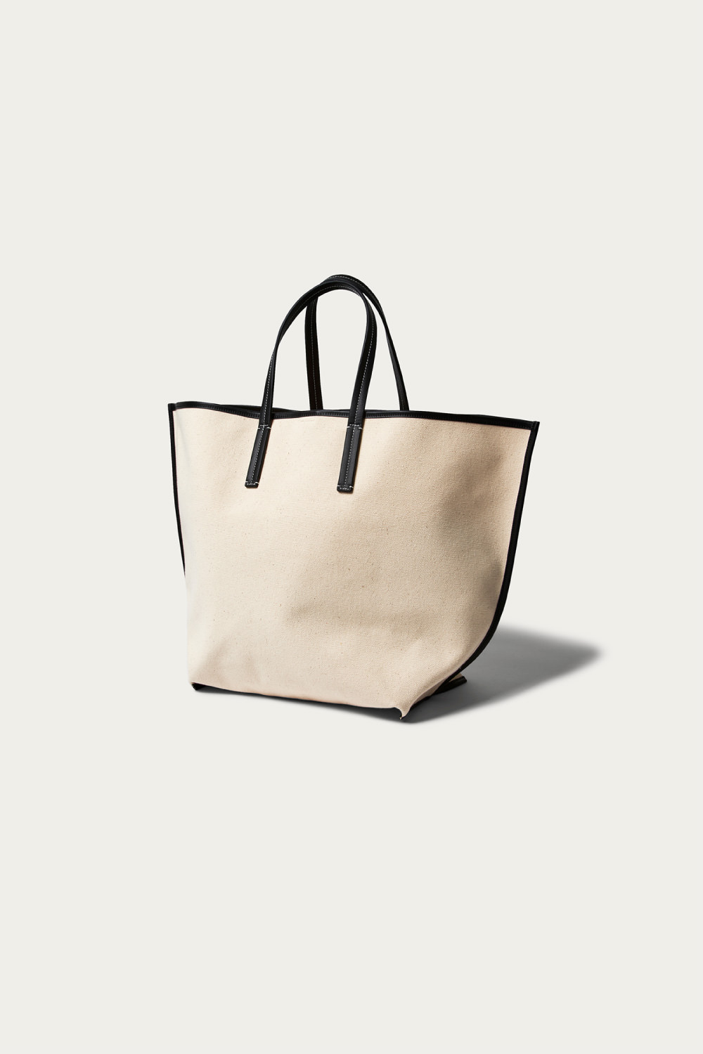 キャンバスとレザーでシンプルなオリジナルトートバックを制作しました。2枚を張り合わせることで軽い1枚仕立てにした他、部分使いのレザーと細いハンドルレザーが品の良さを演出します。内装にはポケットと小物を付けれるパーツも装備と気の利いたディテールも嬉しいデザイン。デイリーに使えるブラックとホワイトの2色展開です。