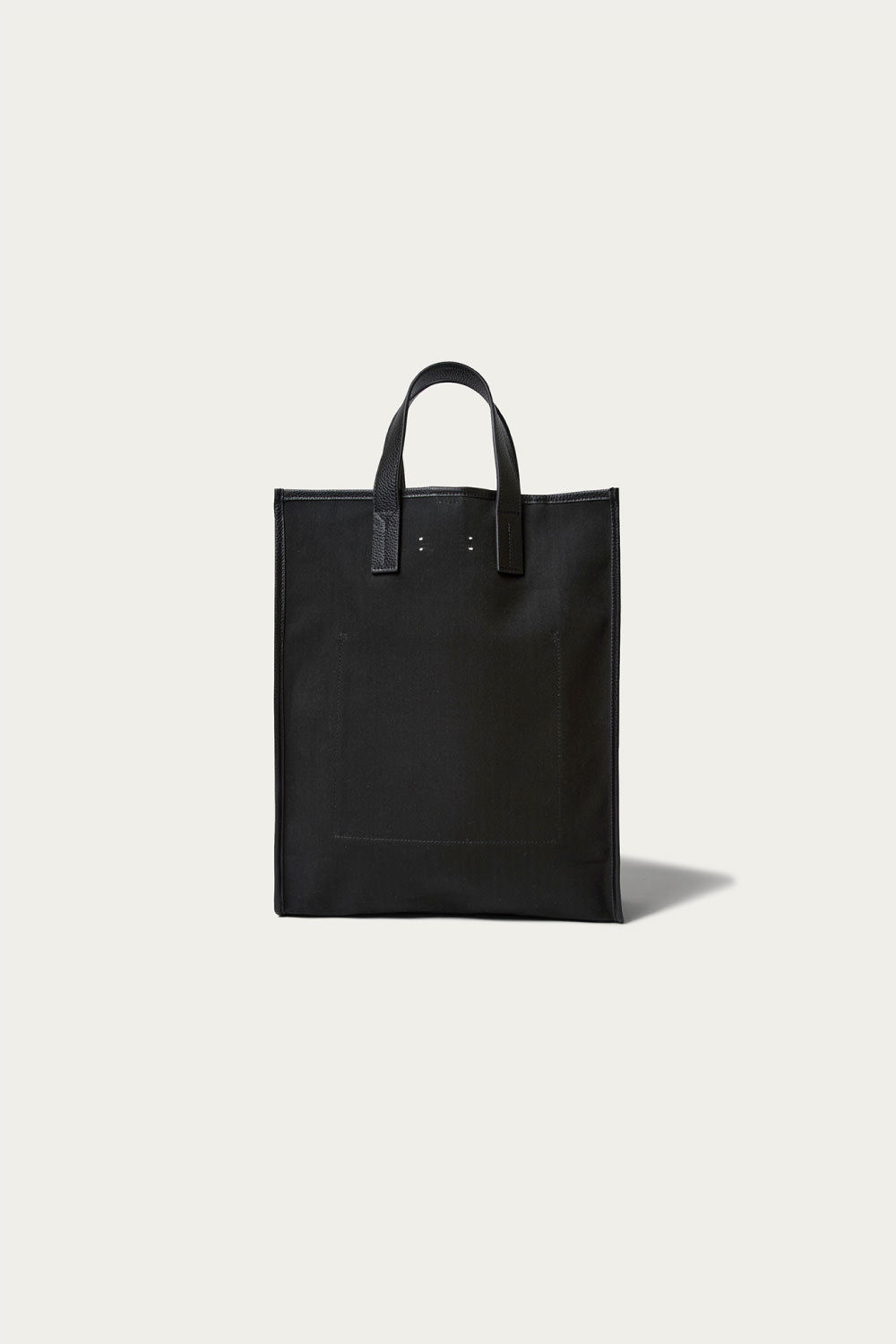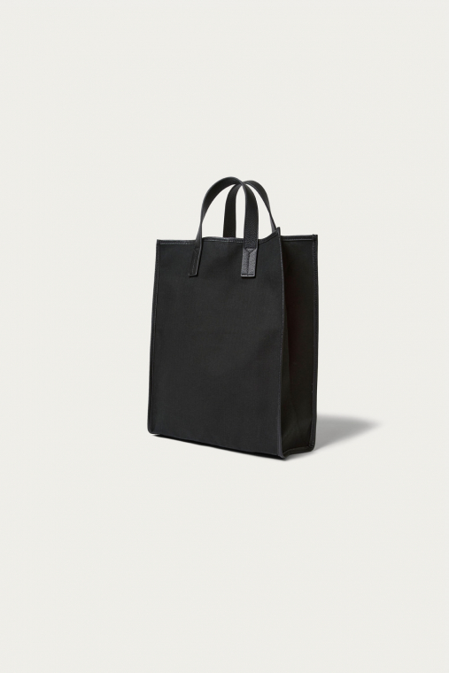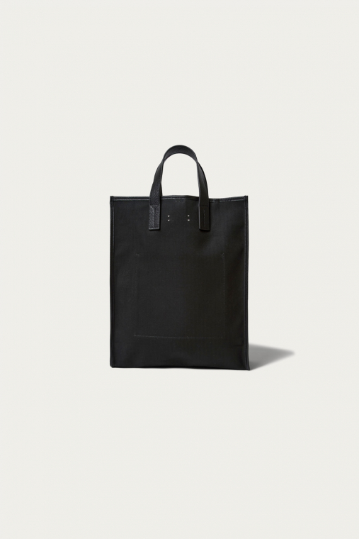 コットンヘリンボーン生地と味わい深いシボレザーにて、シンプルなオリジナルトートバックを制作。2枚張り合わせで1枚仕立てにした、上品でフォーマルな雰囲気も持つカジュアルバックは、内装にポケットと小物を付けれるパーツも装備。デイリーに使えるブラックとホワイトの2色展開です。