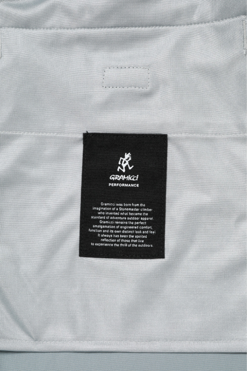 今季も数型で行っている〈GRAMICCI〉との共作ですが、このパンツは〈PERFORMANCE LINE〉のハイスペックモデル。翡翠の粒子を練り込み、外気温をシャットアウト。内側の温度を最大5度下げてくれる機能素材。シェルテック®と循環型リサイクル原料のポリエステル「レニュー」を掛け合わせた2重素材で、快適なストレッチ仕立てです。