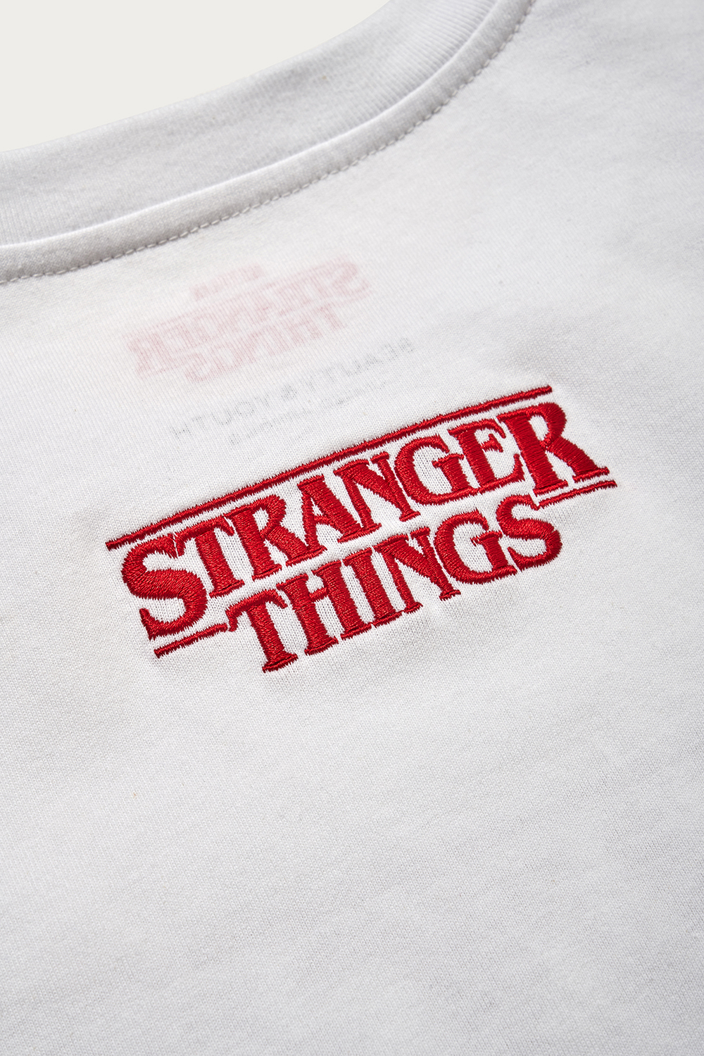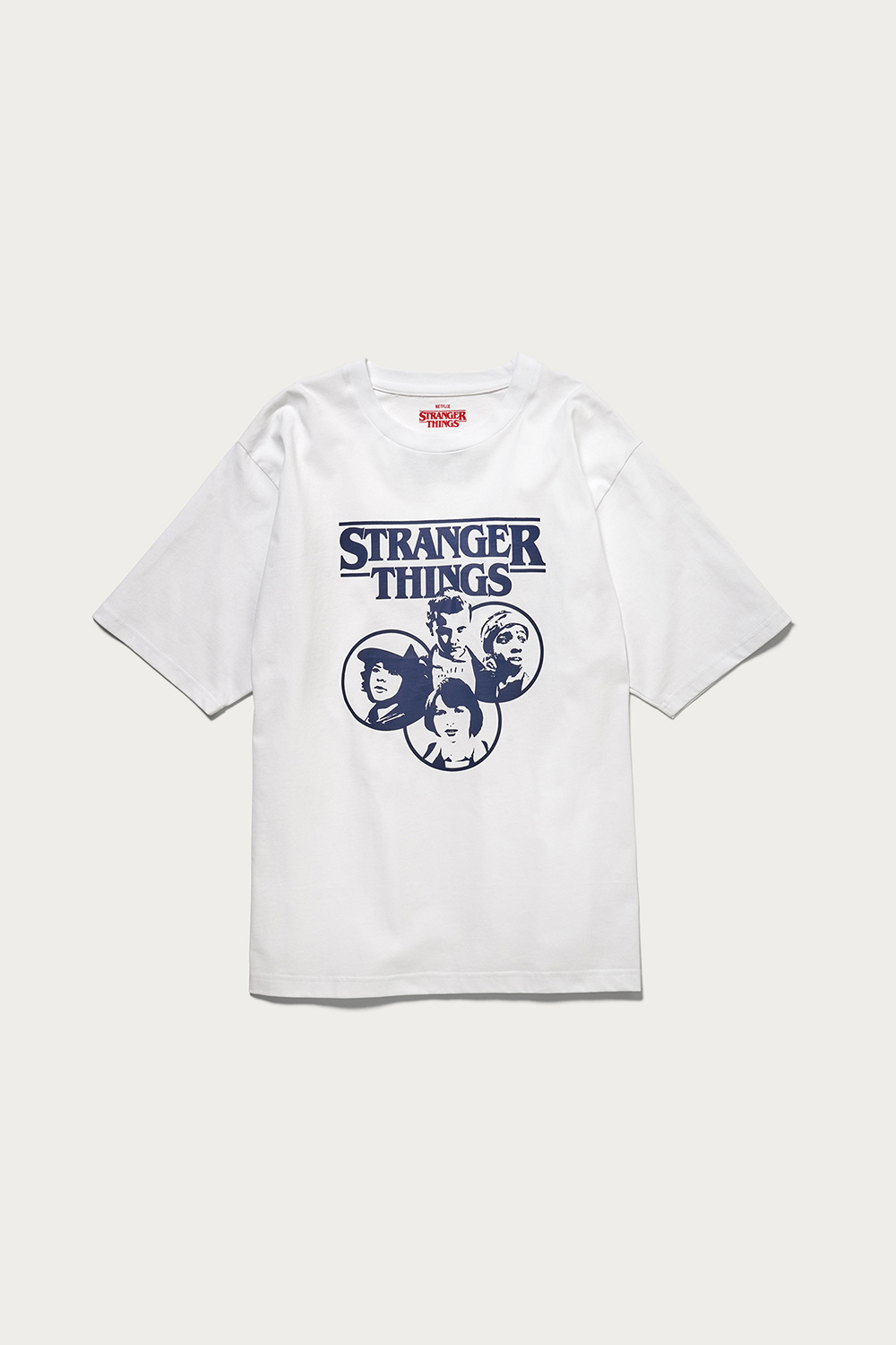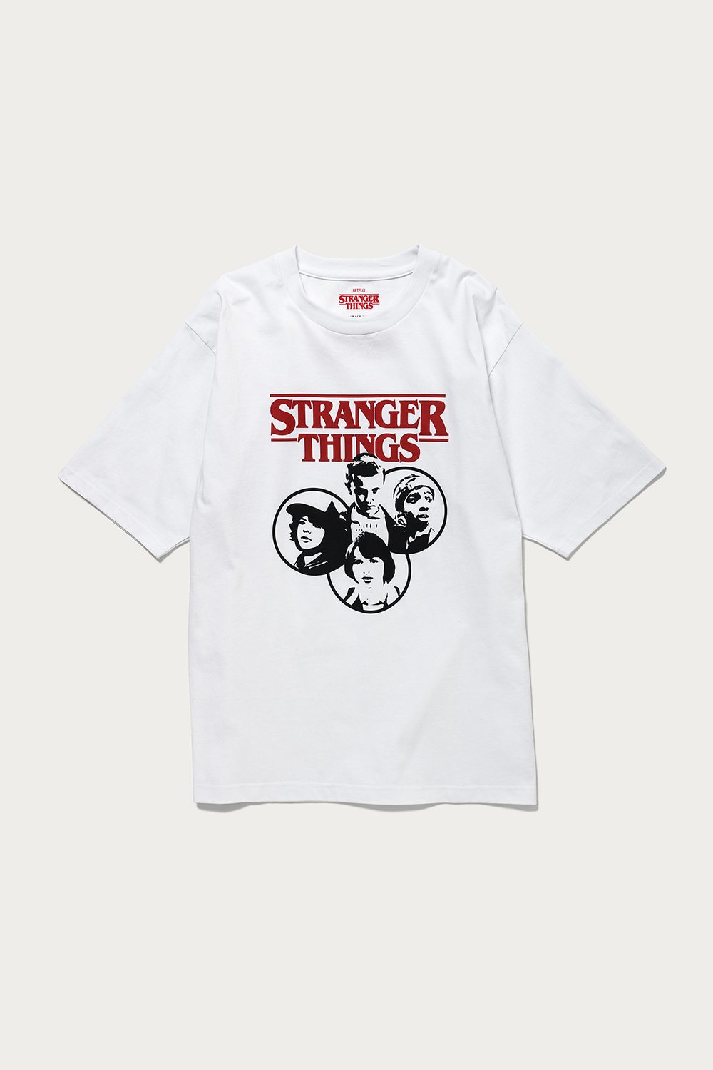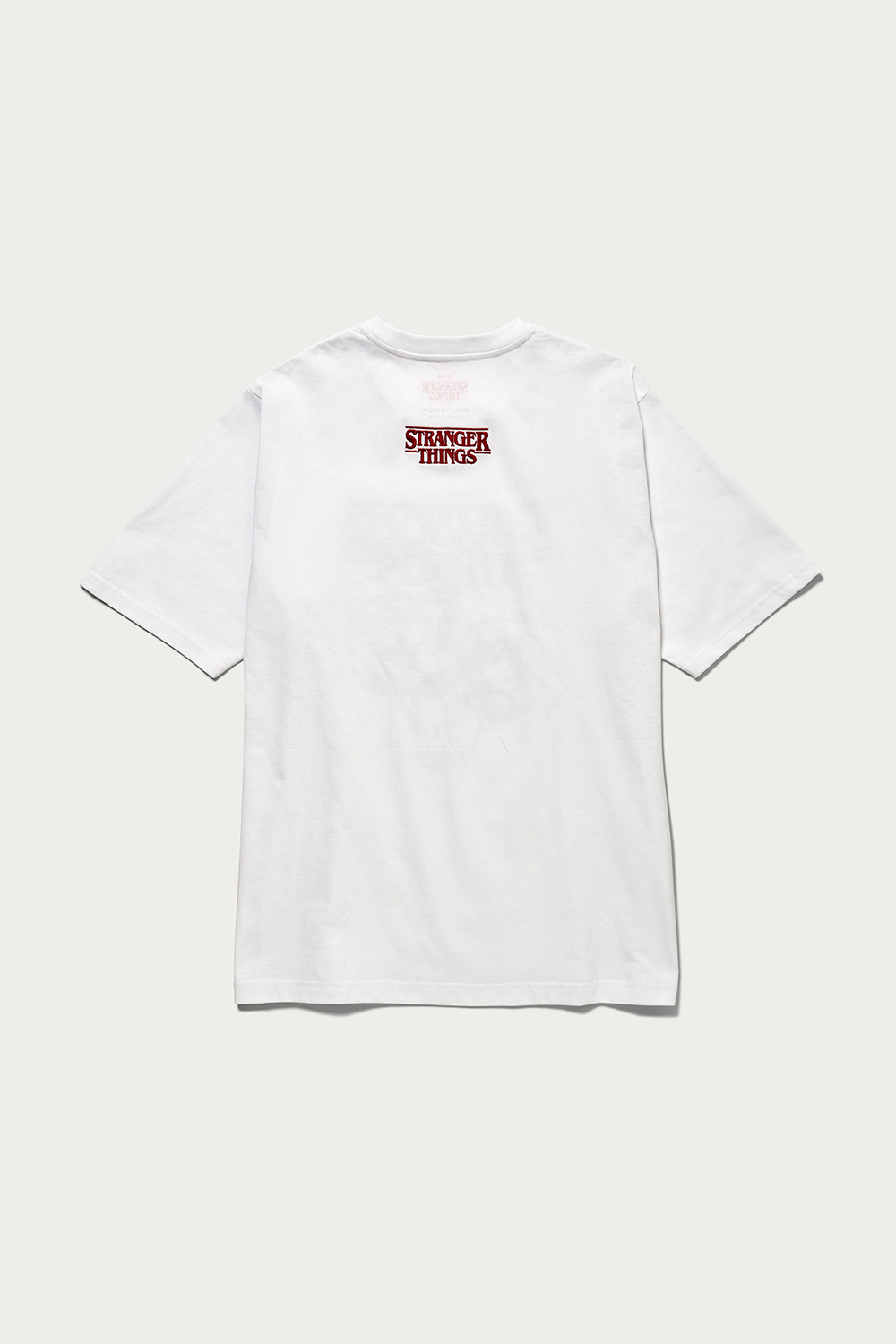 爆発的ヒットとなり、現在はシーズン4の公開が待たれるネットフリックスのオリジナルドラマ、『ストレンジャー・シングス』とのコラボ企画。身幅にゆとりを持たせた厚手のオリジナルボディを使っていて、性別や世代を問わずに楽しめる1枚です。赤いロゴが通常版、ネイビーのロゴが〈BEAUTY&YOUTH〉の別注カラーです。