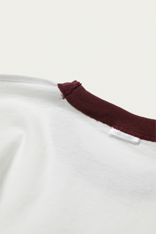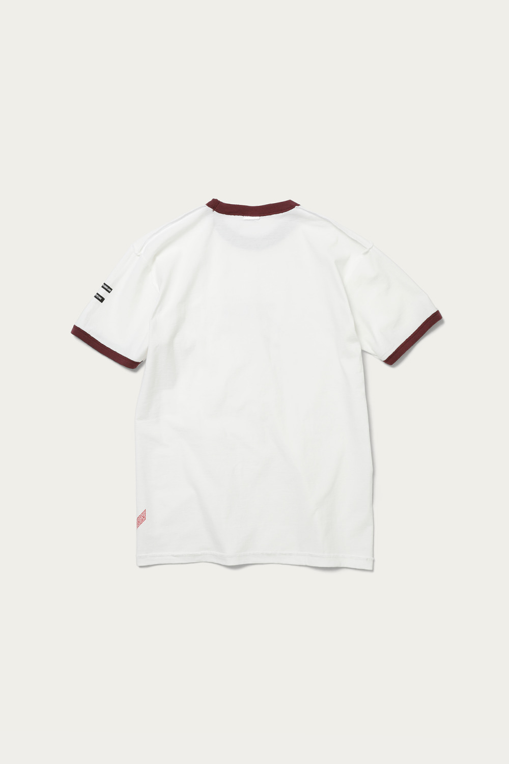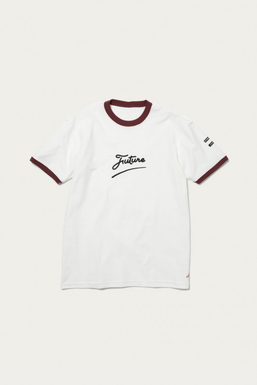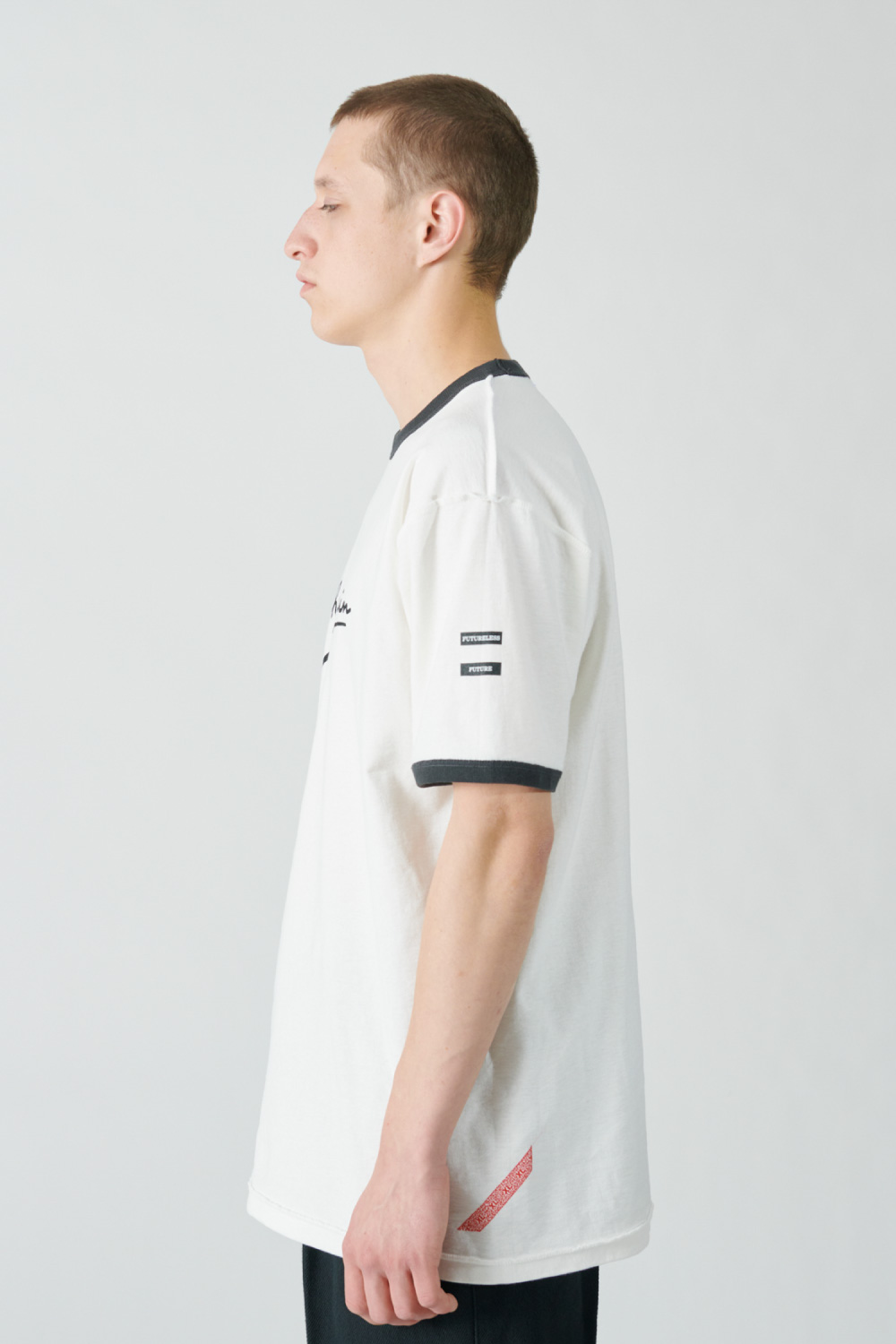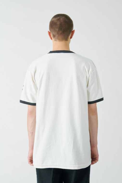 カジュアルでリラックスした物作りに独自のスパイスをブレンドする〈PHINGERIN〉から、今の気分を直球でプリントしたトリムTが登場。フロントへ大胆にデザインしつつも、ブランドらしい力の抜き加減が絶妙なバランス感を演出。ブランドで人気の袖プリントも、さり気なく施されているのもポイントです。