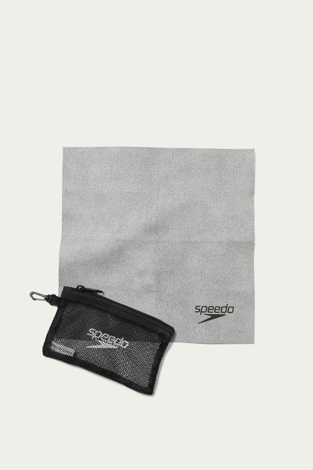 スイムウェアブランド〈Speedo〉による水泳用タオルは、高い吸水力と速乾性がありながらも乾いて硬くならない最新素材を使用しバンダナサイズにて別注。カラビナ付きのメッシュポーチに収納でき携帯しやすく日常生活からアウトドアシーンでもお使いいただけます。抗菌仕様。