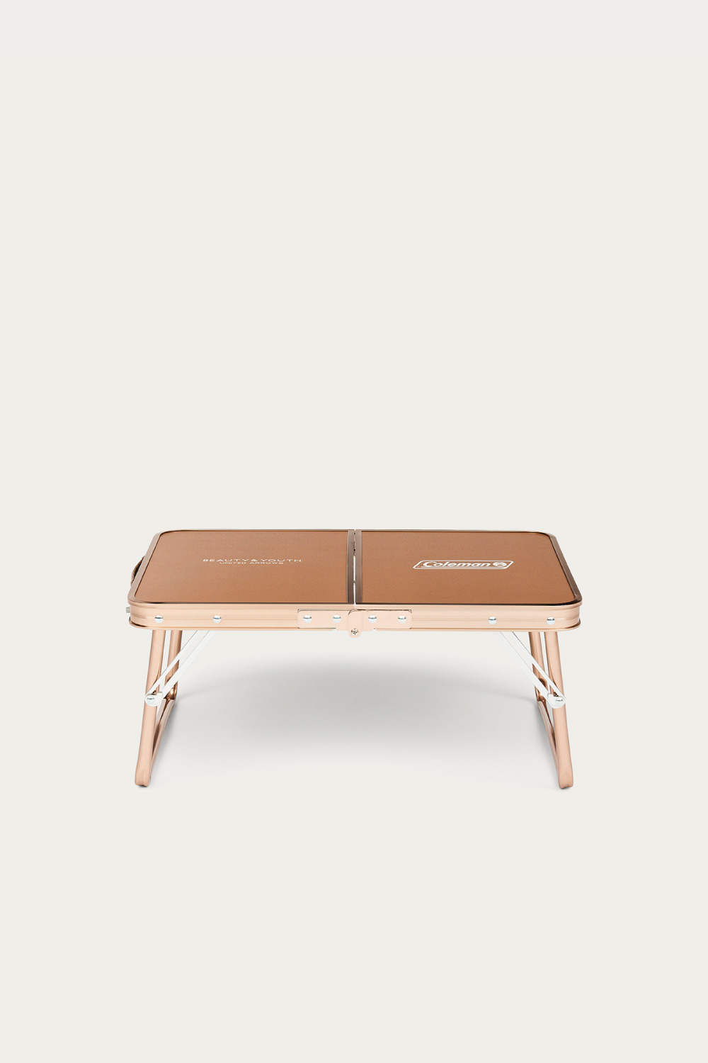 〈BEAUTY&YOUTH〉では恒例となったアウトドアブランド〈Coleman〉との別注コレクションの2021年春夏モデルが登場。持ち運びにも便利な折り畳み式のミニテーブルはクラシカルなテイストなので、アウトドアだけでなくベランダやご自宅のサブテーブルなど、気の利いたインテリアとしても楽しめます。