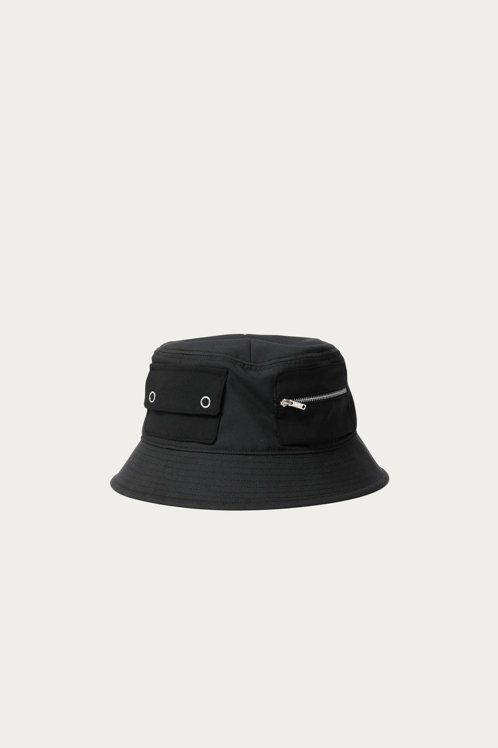 「表層では見えない本質(裏)を表現すること」をコンセプトとし、2019年のブランドスタートからまだ間も無いにも関わらず、洋服好きたちから着実に支持を得る〈Indietro Association〉。モノトーンのシックなハットは、フィッシングからインスピレーションを受け、様々な箇所にポケットを配したファンクショナルなデザインが渋い逸品。