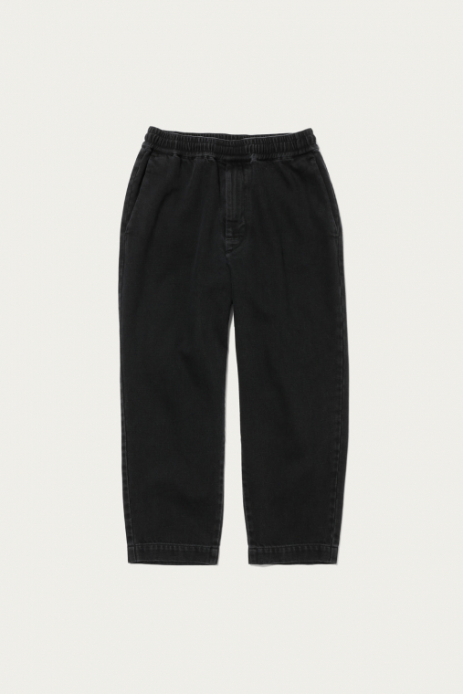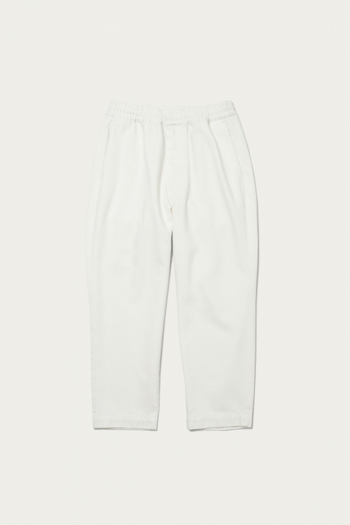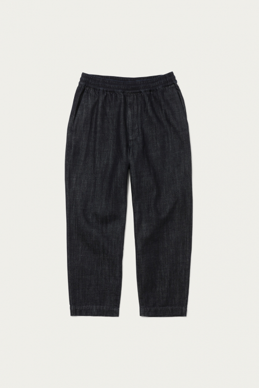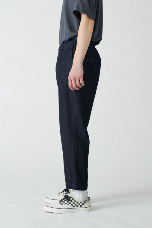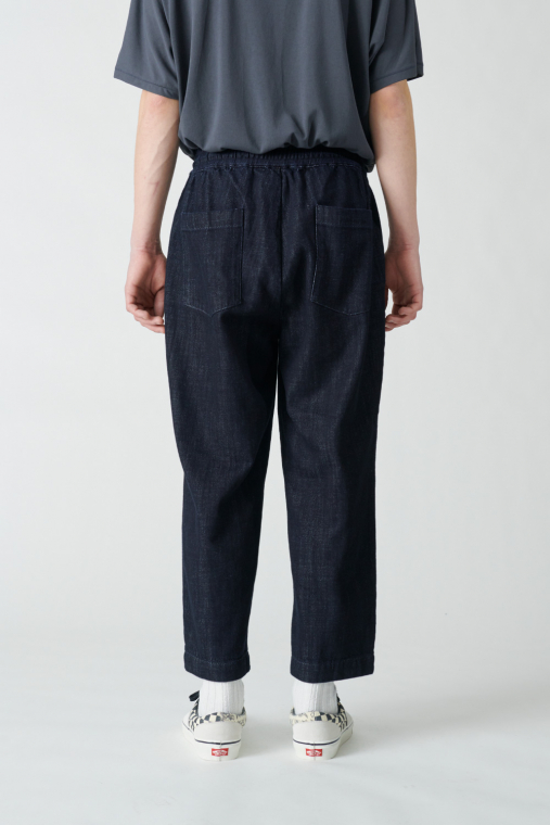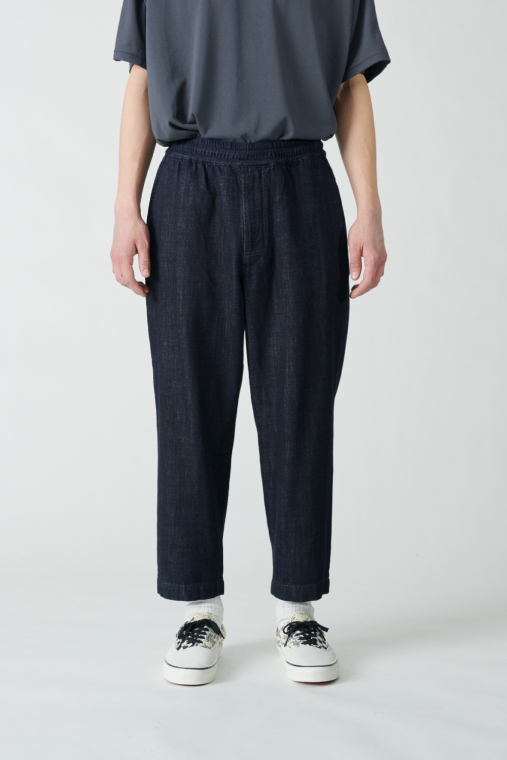 デニムらしい厚みと、それに反した柔らかさを併せ持つ生地を使ったイージーパンツ。ベーシックな5ポケットのジーンズからしばらく離れていた人でも、違和感なく取り入れられるデニムパンツです。パッチポケットやすそのステッチなど、カジュアルなディテールはボリュームのある革靴やスニーカーとサラッと合わせて。