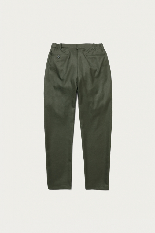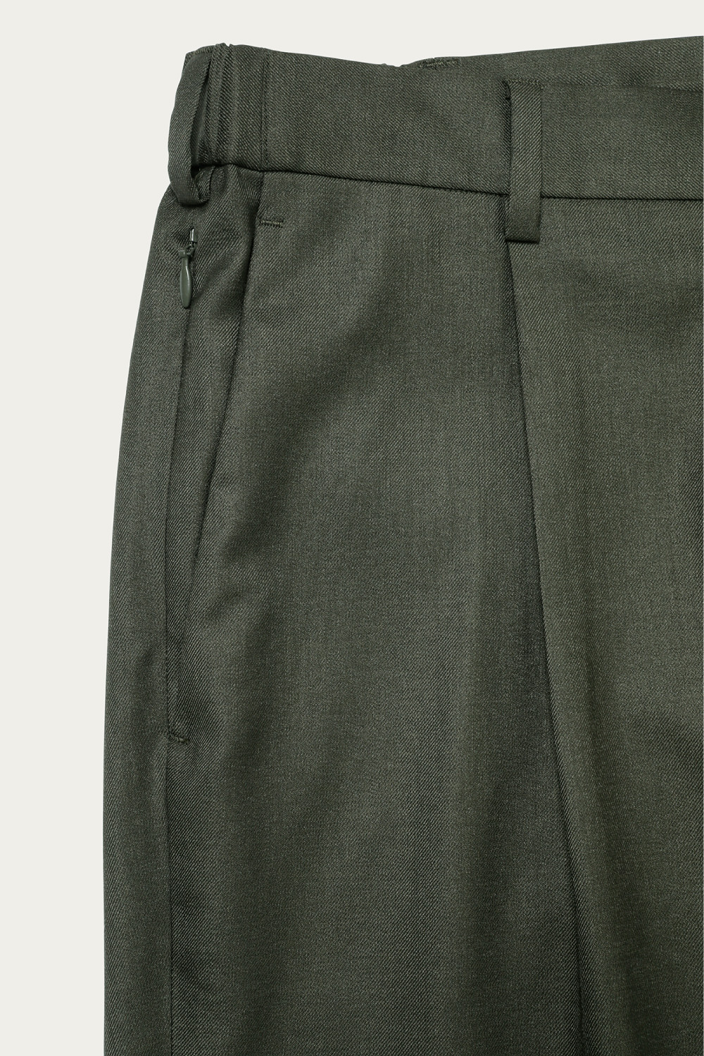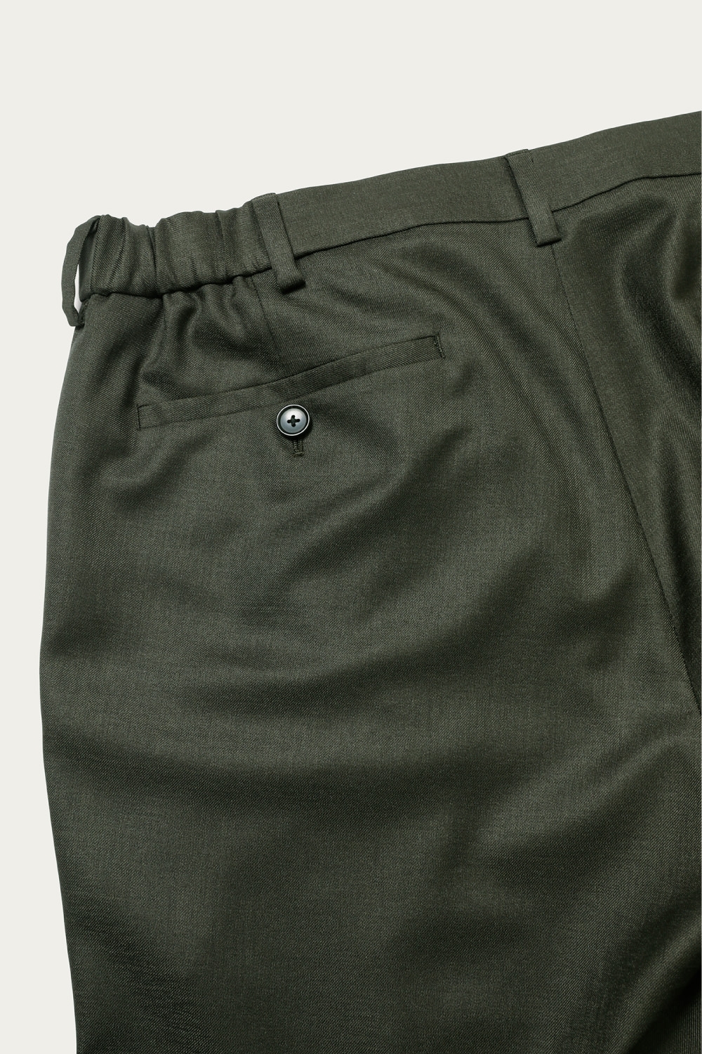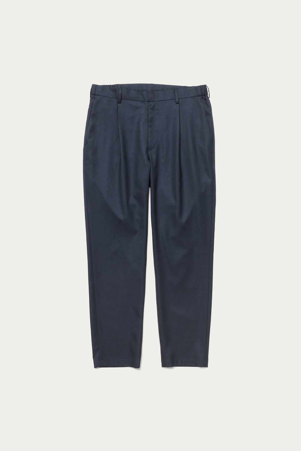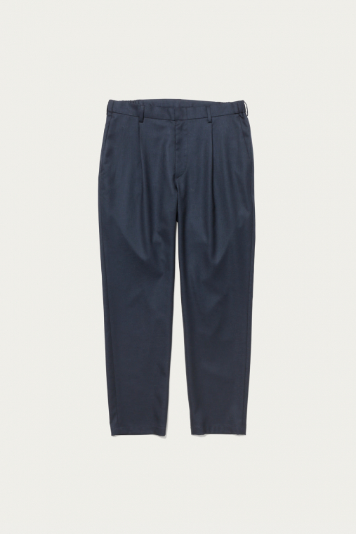 リネンライクな光沢感と速乾性、シワになりにくさと行った機能を備えた東レ独自の化繊生地、リランチェ_を使ったタック入りパンツ。落ち着いたカラーバリエーションによって奥行きのある素材感を引き立てています。自然なテーパードシルエットはシンプルなトップスとも相性が良く、同素材のジャケットとのセットアップでも良く映えます。