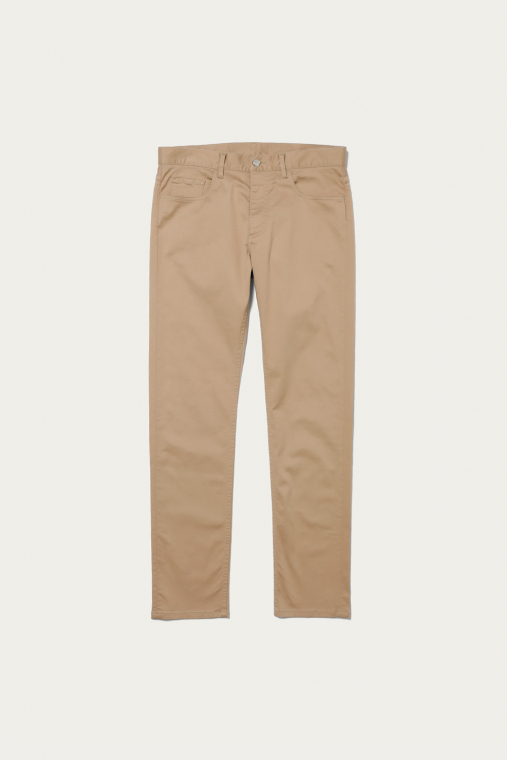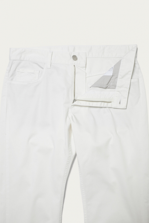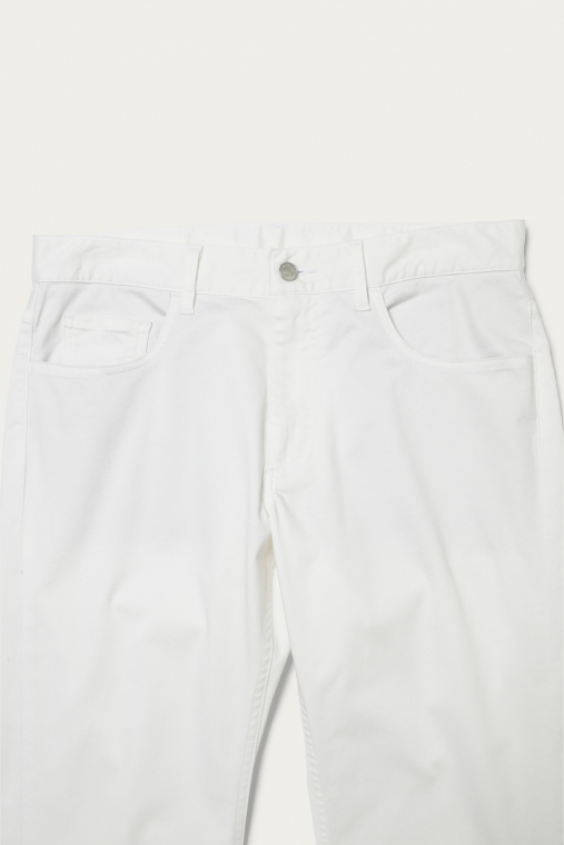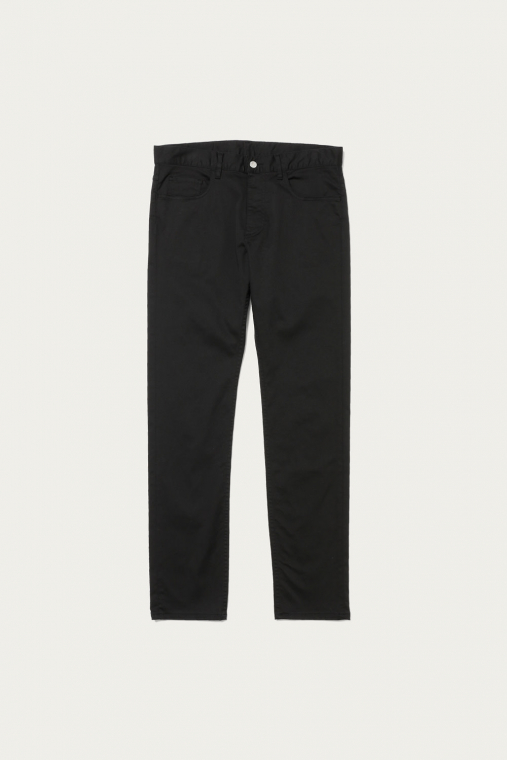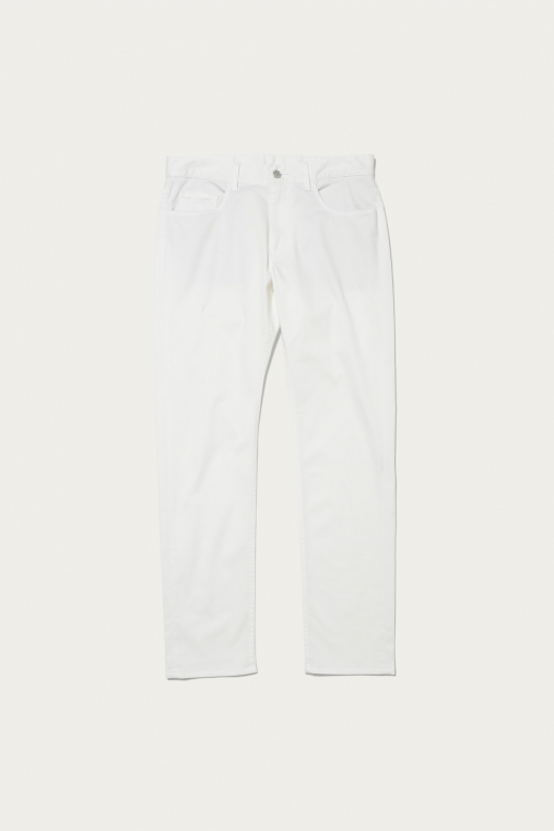 着用シーンを選ばない、チノクロス仕立ての5ポケットパンツ。高い伸縮性を備えているので、細身のレッグラインでも窮屈さが一切ないのが大きな利点です。オーバーサイズのトップスと合わせてカジュアルに着ても、上品なシャツをタックインしても絵になるアイテム。着まわしやすく合わせやすい、ベーシックな3色での展開です。
