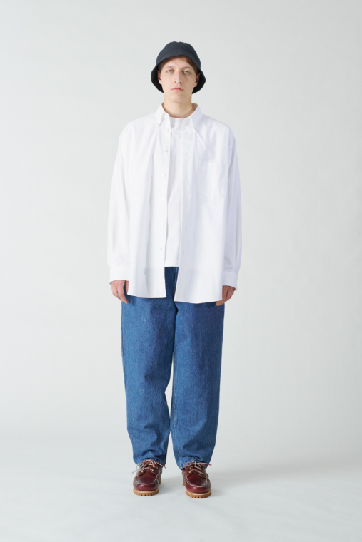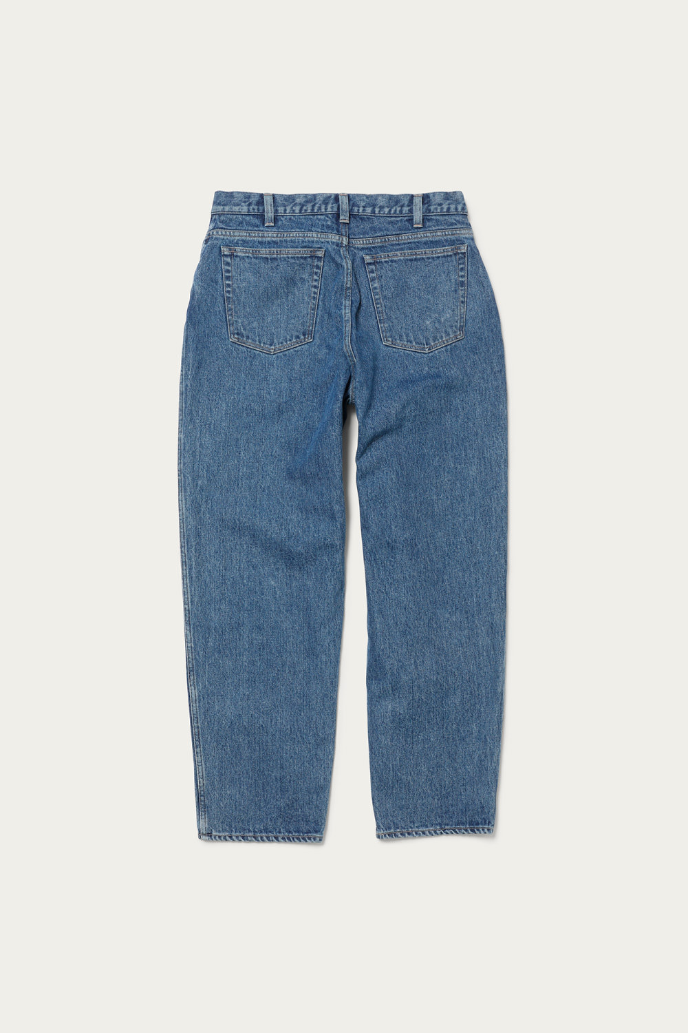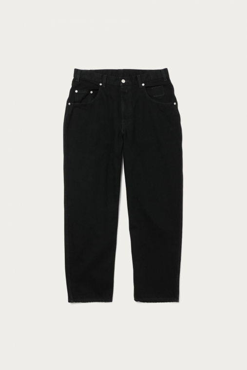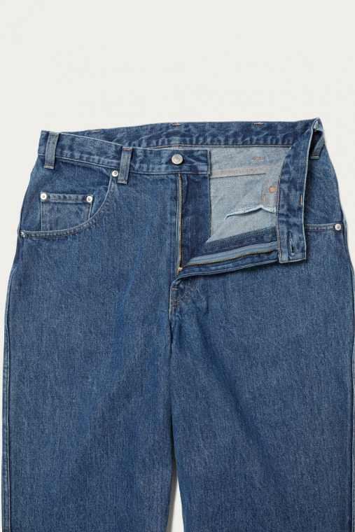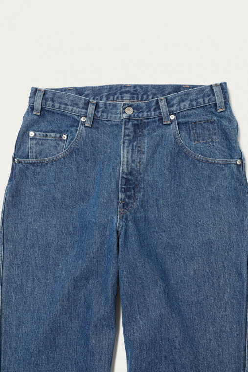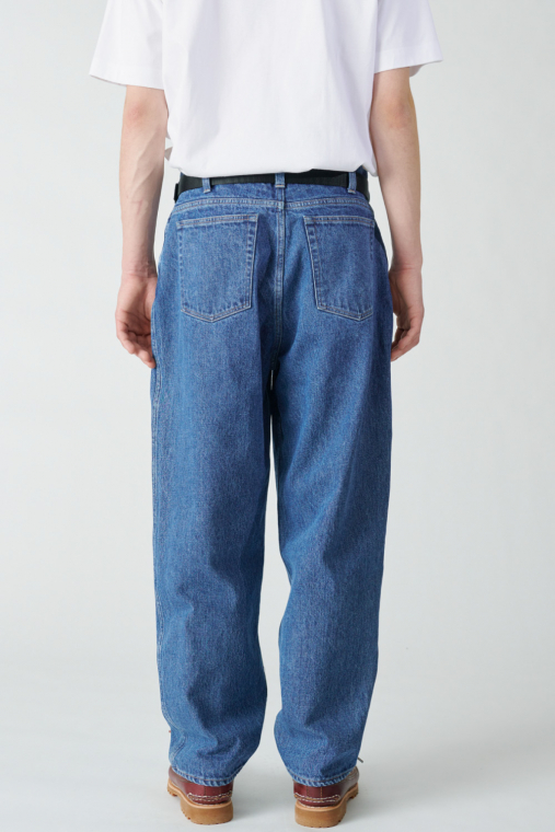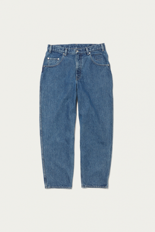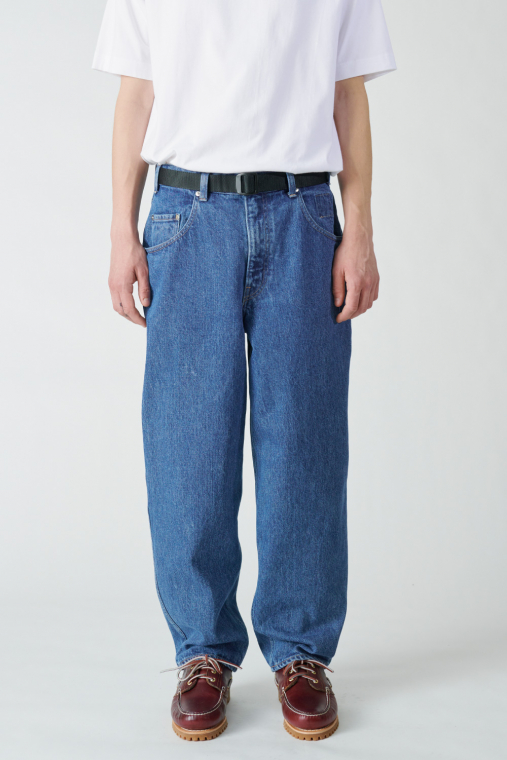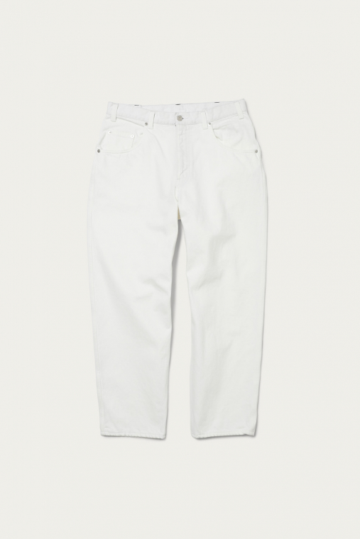 90‘sのスケートボードシーンがイメージソースになった、ワイドテーパードシルエットの5ポケットジーンズ。スラブ糸を使うことでクラシックなムードが高まり、中でもインディゴブルーの中途半端な色落ちは今また新鮮に映ります。ワントーンでまとめても絵になるホワイト&ブラックを加えた、3色での展開です。