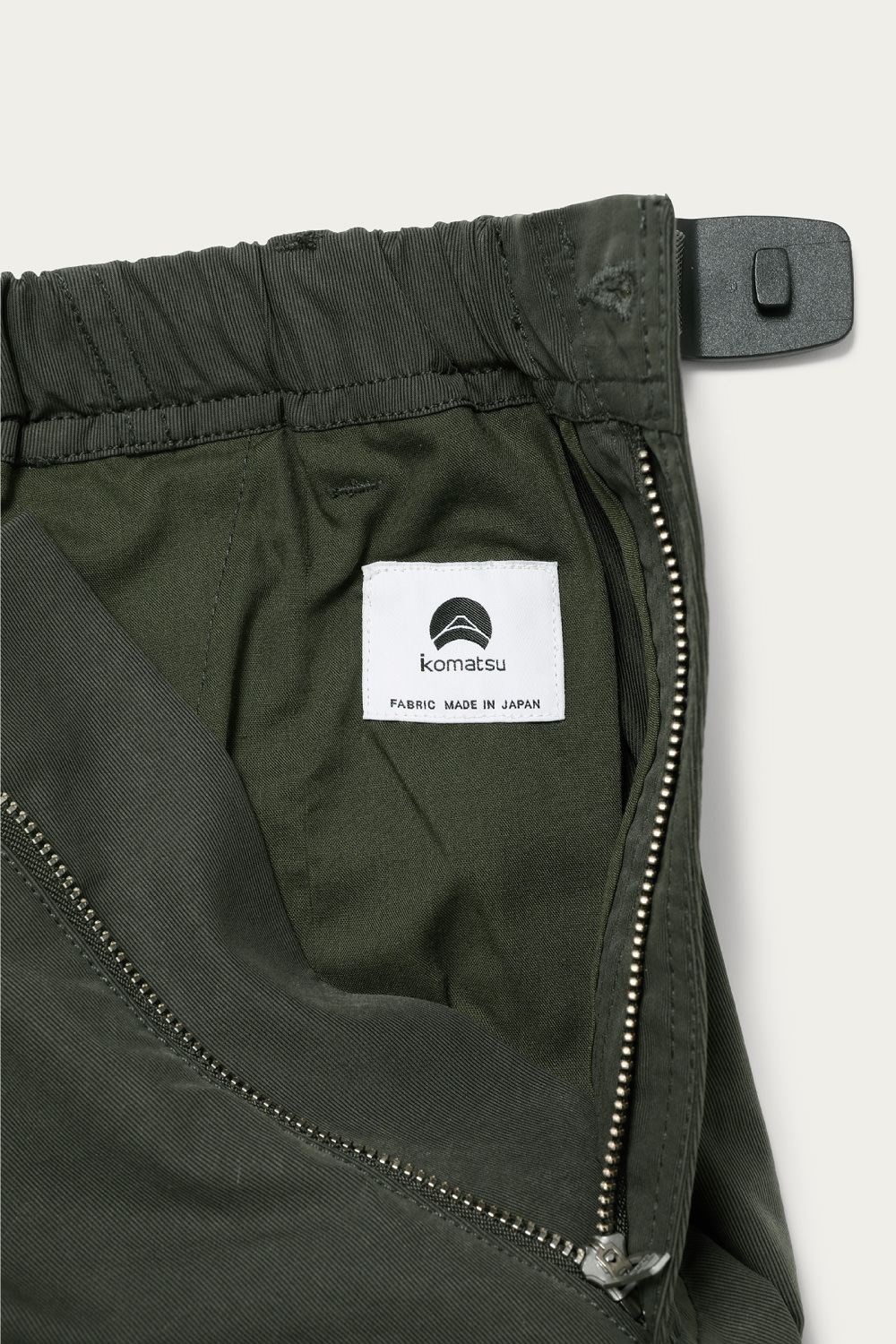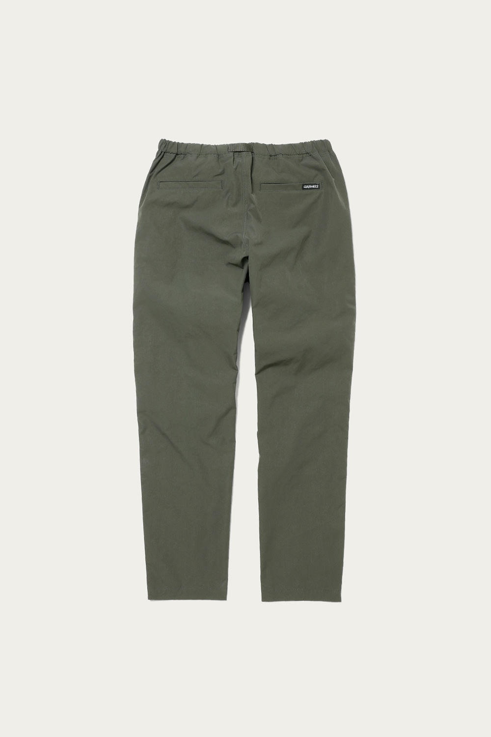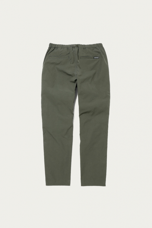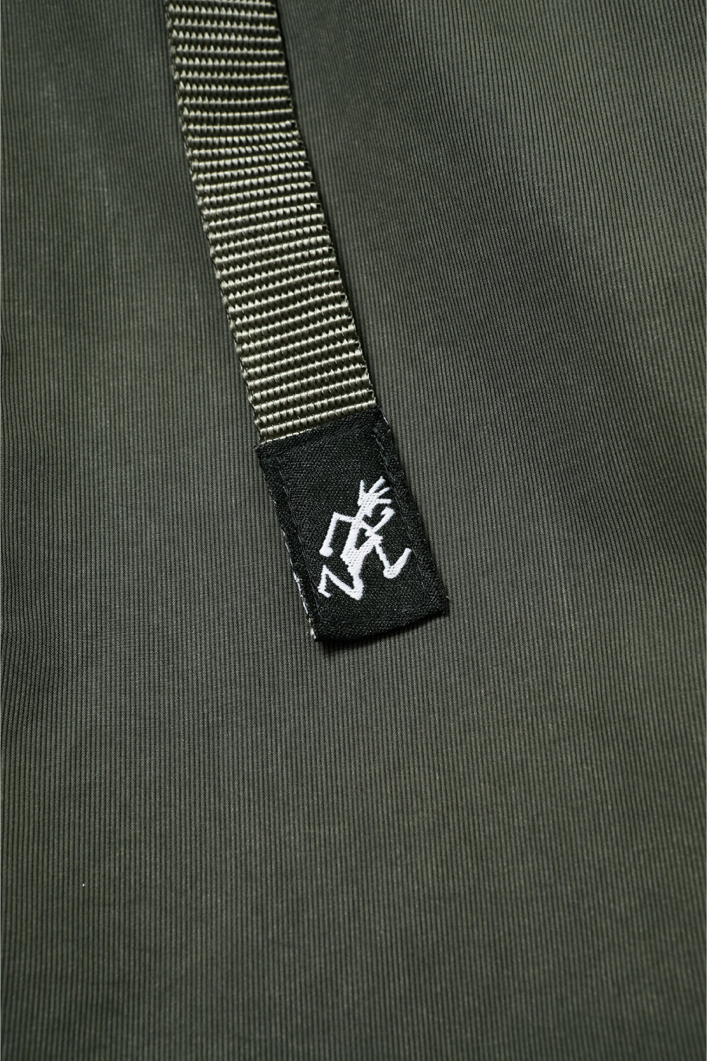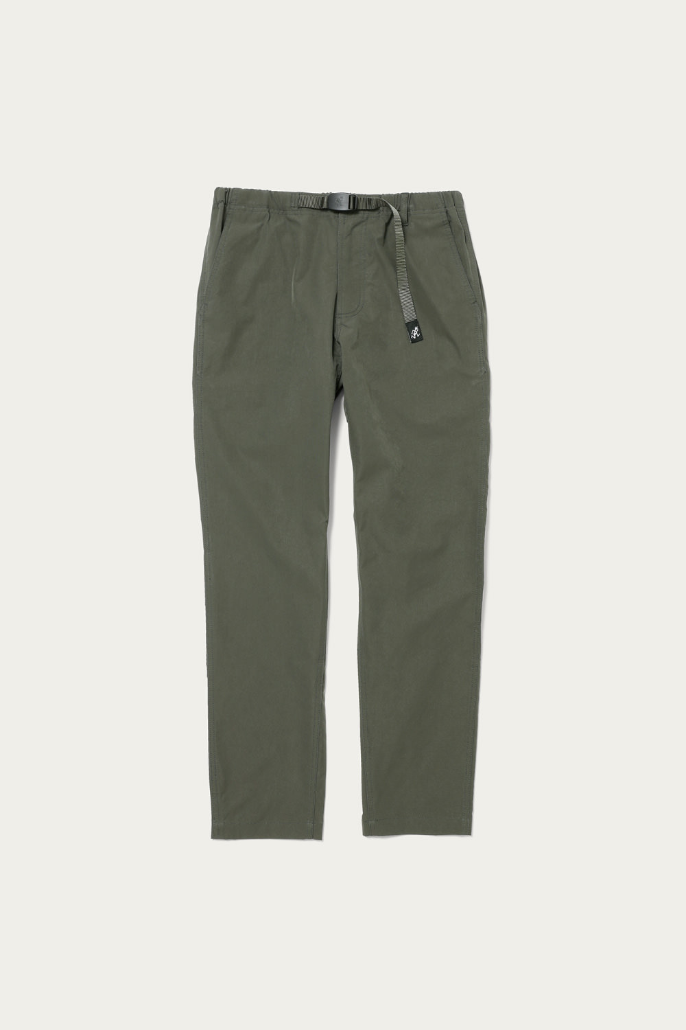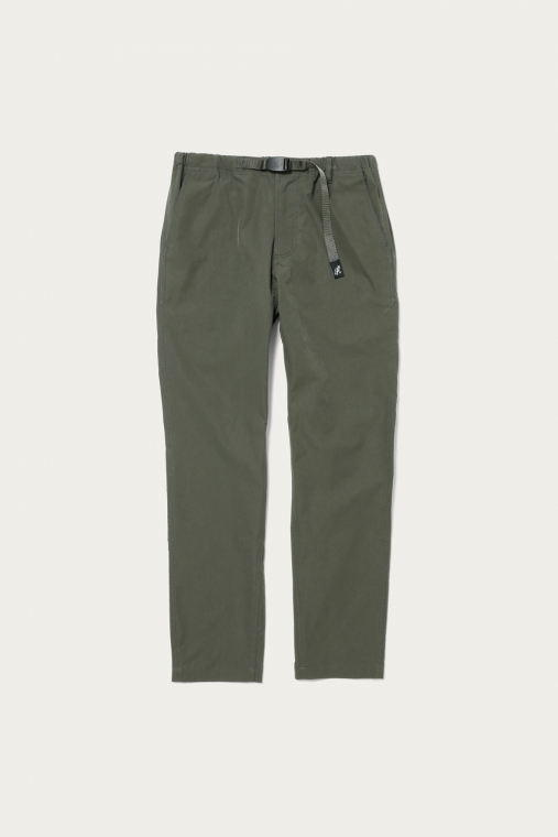 ベルトの色まで同色で揃えた〈GRAMICCI〉のクライミングパンツは、生地加工の旗手、小松マテーレを加えたトリプルコラボモデルの第3弾。ポリエステル混ナイロン生地に、(テクノビンテージBJ)と呼ばれる特殊加工を施すことで、その名の通り古着の様な味わい深さを表現しています。はっ水性も備えていて、機能面も抜かりはありません。