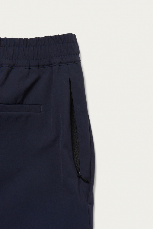 片手で調整できるベルトを設けた、アウトドアライクなパンツ。アクティブなのは見た目だけでなく、撥水性も備えた名実ともに機能的な1着です。全方向に伸縮する生地を使った“360°MASTERシリーズ”のアイテムのひとつで、タック入りの動きやすいシルエットやセキュリティポケットの採用など、実用性にこだわったパフォーマンスウェアです。