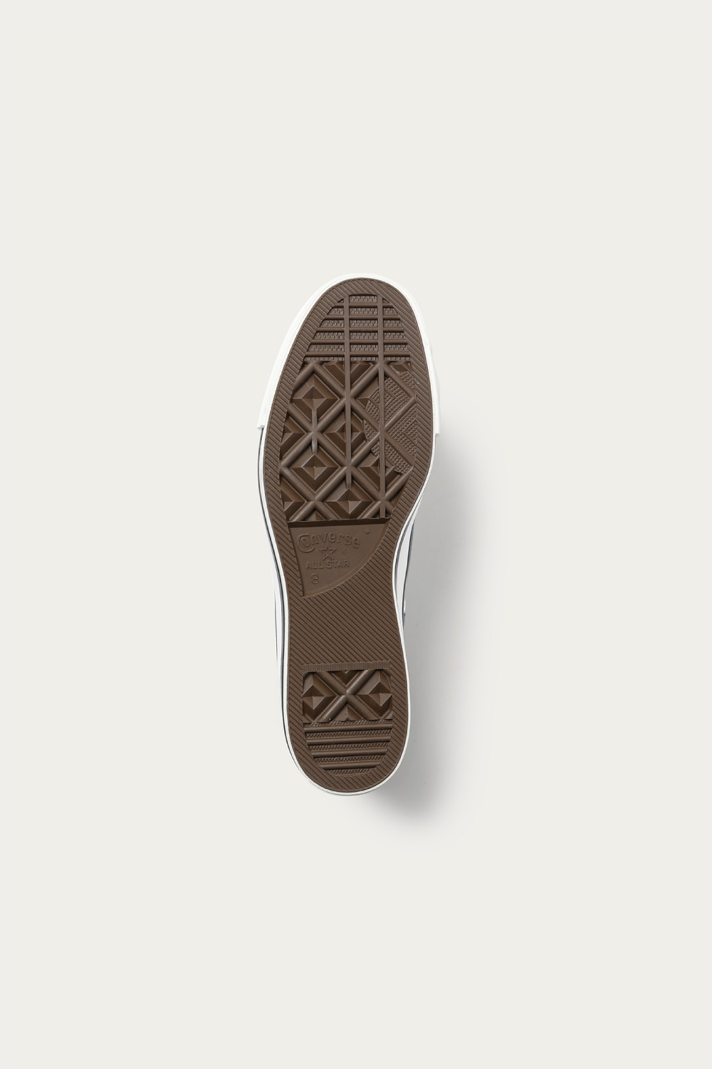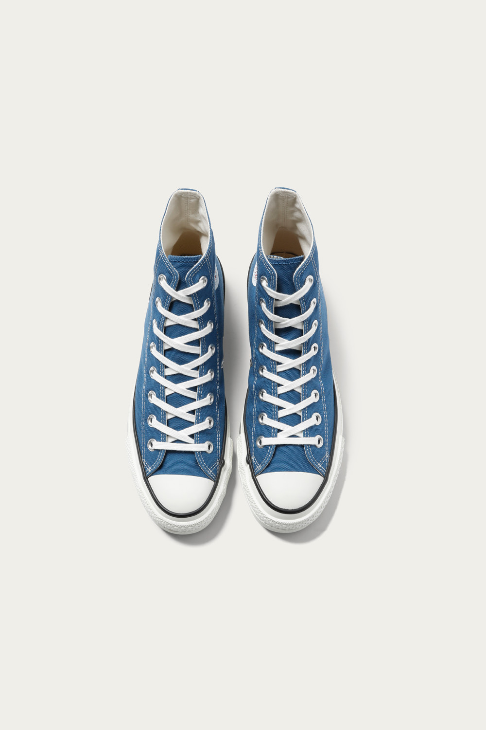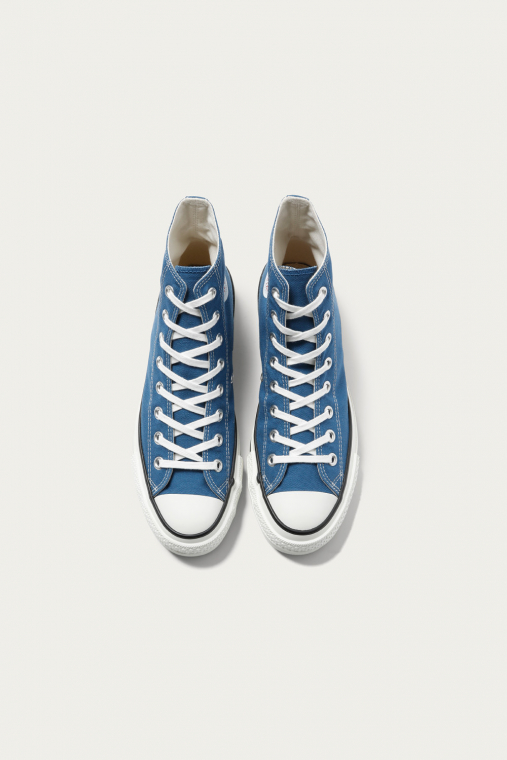 往年の〈CONVERSE〉ファンからも高く評価される”MADE IN JAPAN”シリーズにニューカラーが登場しました。春夏のスタイリングとも相性のいい爽やかなライトネイビーカラーに、生成りのテープとシューレースがクラシカルな雰囲気を演出しています。生成りのキャンバスに赤字で刻印されたブランドロゴは日本の国旗をイメージされています。