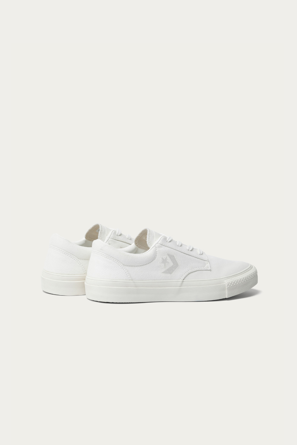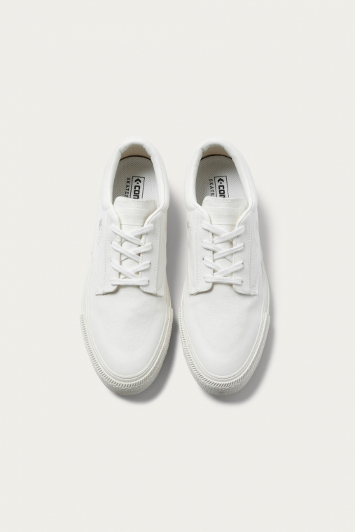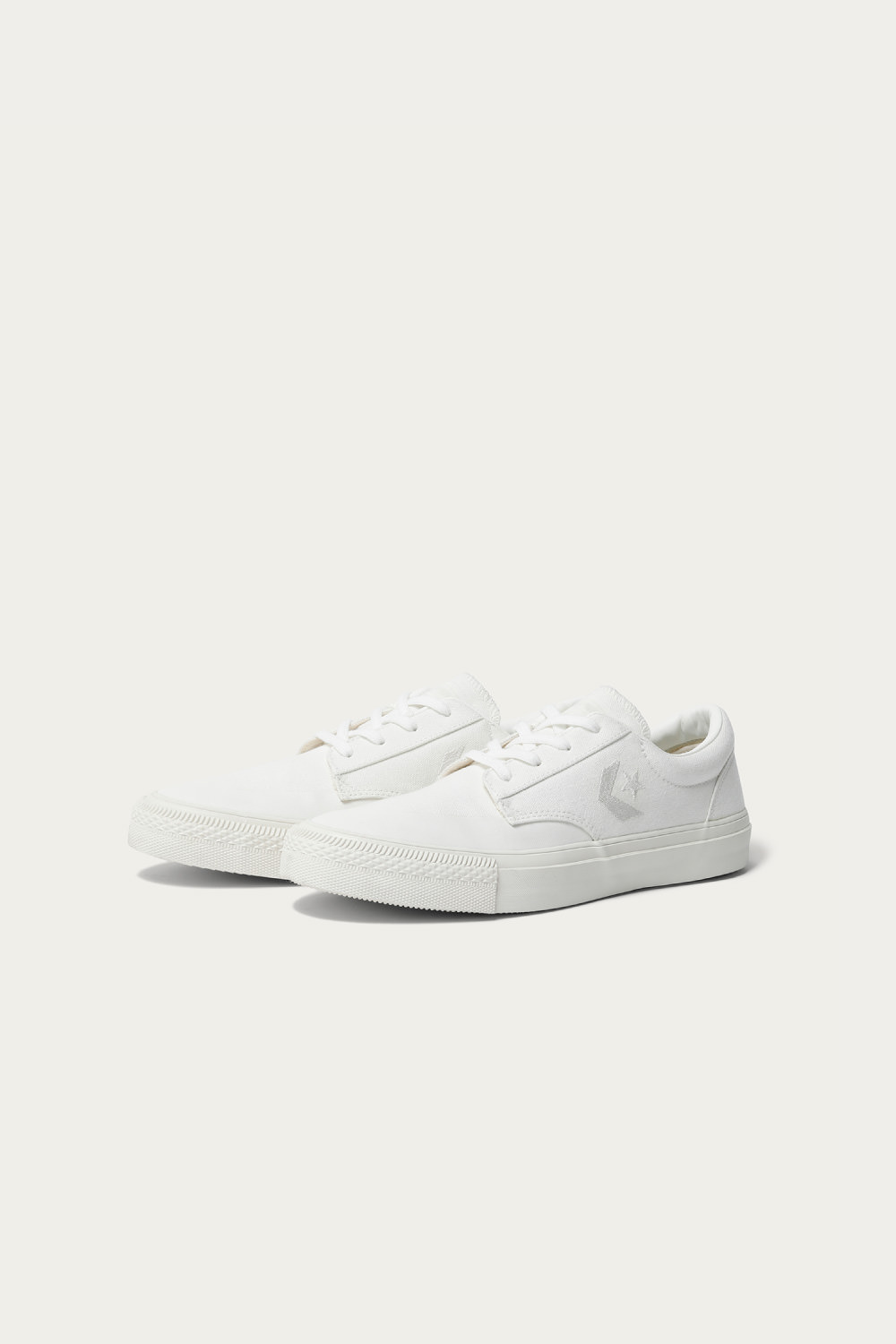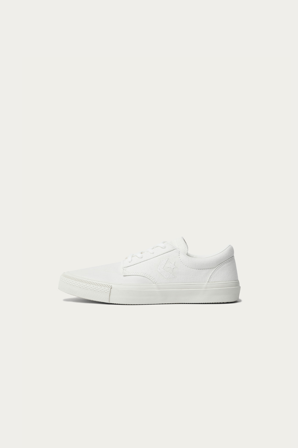 タウンユースとしても人気のスケートライン〈CONVERSE SKATEBOARDING〉の新作モデル。スケートシューズならではのスタイリッシュな面持ちに、ダメージの受けやすいトゥの補強プリントなどで耐久性を向上。全体を単色でまとめたオフホワイトとブラックのカラー展開がどんなスタイルにもスッと馴染んでくれます。アッパー同色のスペアシューレースも付属。