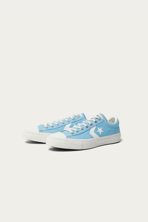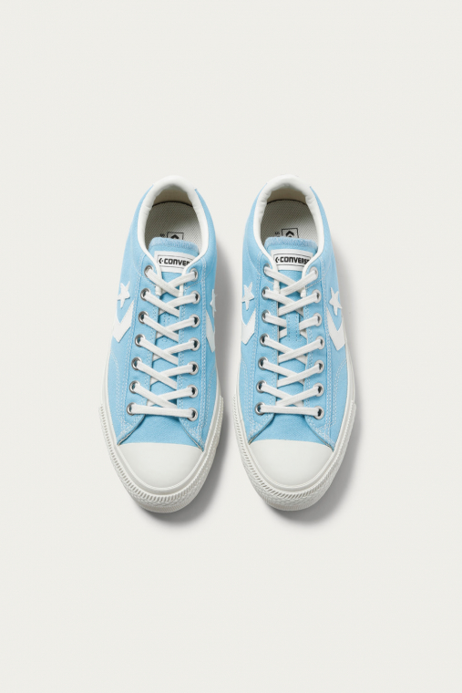 人気のスケートライン〈CONVERSE SKATEBOARDING〉のスタンダードモデルです。ブランドのアーカイブモデルであるオールスターⅡをスケート仕様にアップデート。生成りのテープやシューレース、光沢のあるハトメなどファンも唸るクラシカルなディテールが光る。アッパーは淡いブルーとブラウンの2色展開で、同色のスペアシューレースも付属。