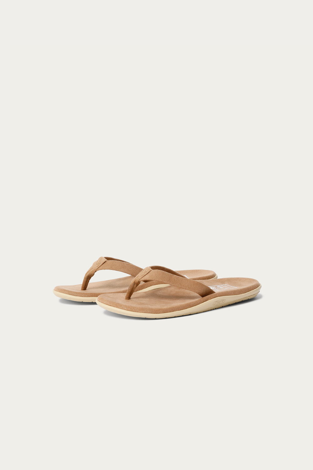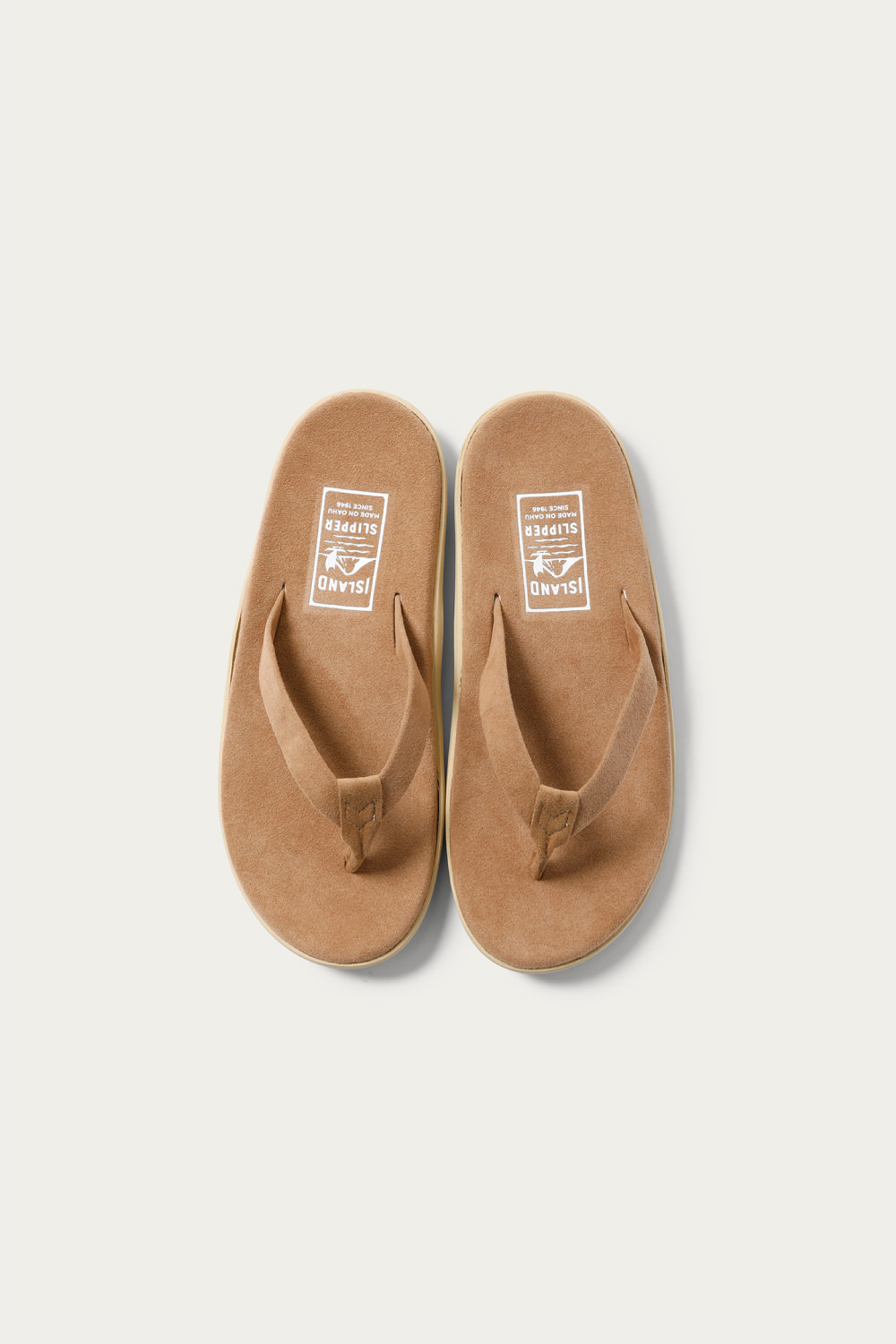 メイド・イン・ハワイのリゾートサンダルメーカー〈ISLAND SLIPPER〉の定番トングサンダルをベースに〈BEAUTY&YOUTH〉が別注品を制作。アッパーの素材にはULTRASUEDEを採用しストラップは細く、ステッチを極力少なくする事でシンプルな仕上がりにしているのが特徴です。インソールのプリントも爽やかな印象のホワイトに変更しています。