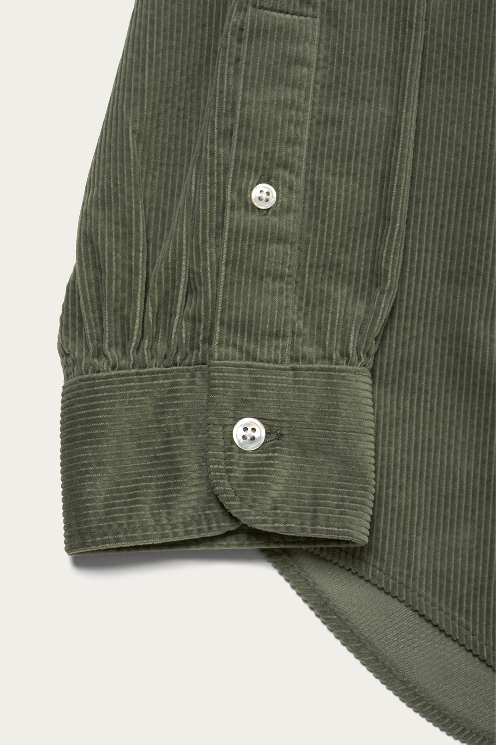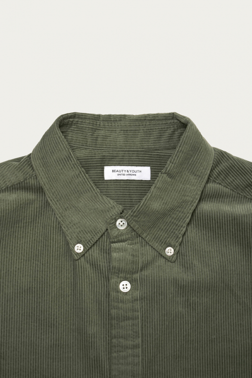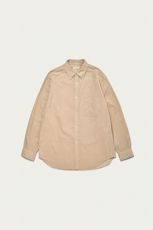 風合いが良く、1枚で着てもサマになる太畝コーデュロイのボタンダウンシャツ。シンプルに素材の質感を活かした普遍的なデザインですが、丈はレギュラーで身幅や肩幅、スリーブにだけゆとりを持たせたシルエットはまず古着では見つからないバランス。着心地の良いソフトな質感で、春夏らしい少し柔らかな色合いの3色を揃えました。