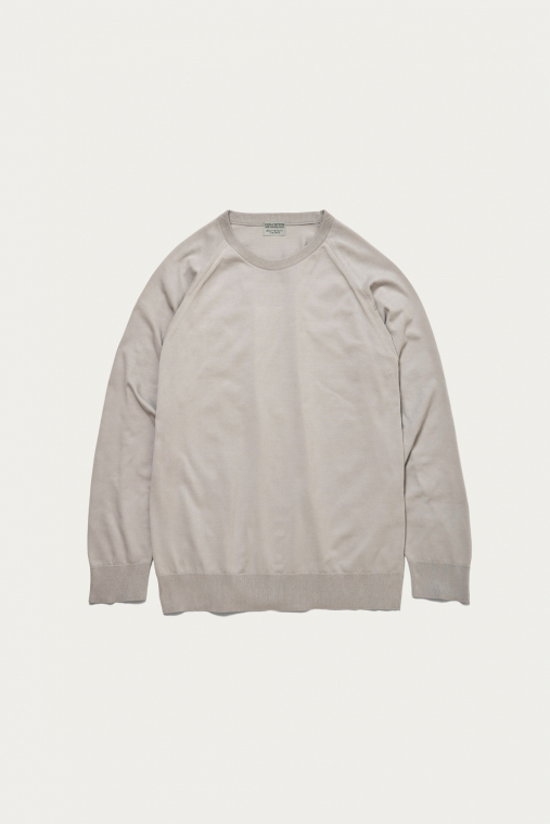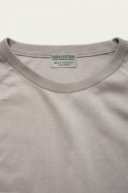 高級綿の代名詞、ギザコットンを使ったクルーネックニット。国内では新潟のあるニッターのみが所有する、特別な編み機で生産される30ゲージモデルで、狂いの無い目と肌触りの良さがその魅力です。着心地も軽やかでロンT感覚で着られる春のワードローブの筆頭的アイテム。信頼のメイド・イン・ジャパンの高品質がデイリーに楽しめます。
