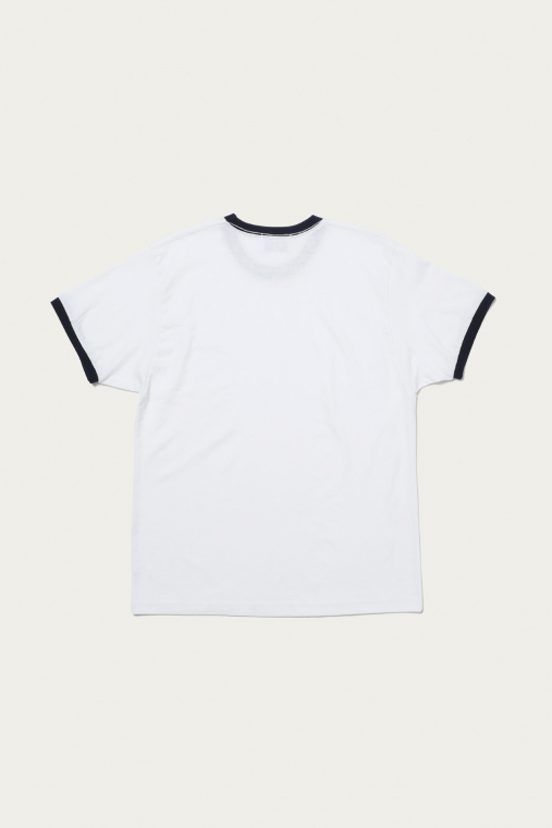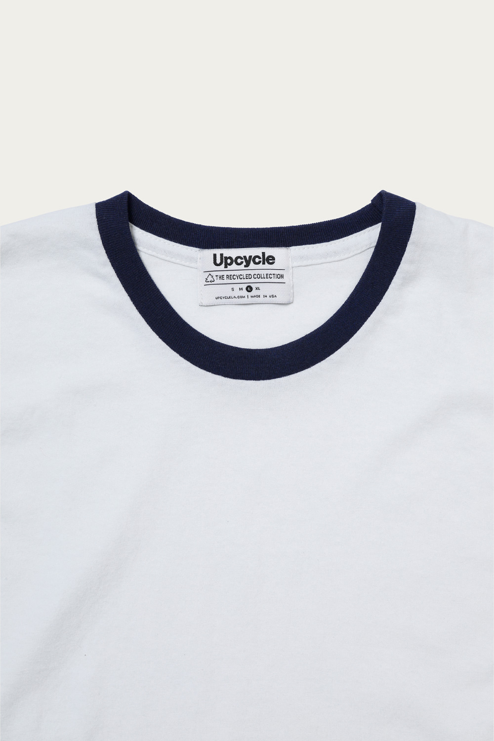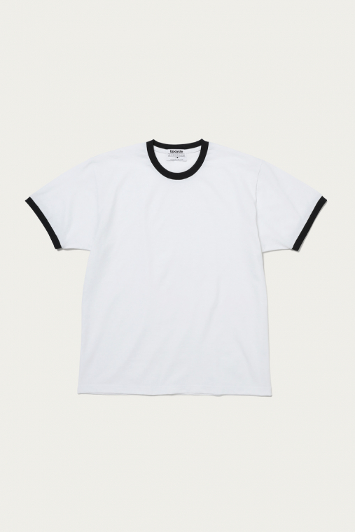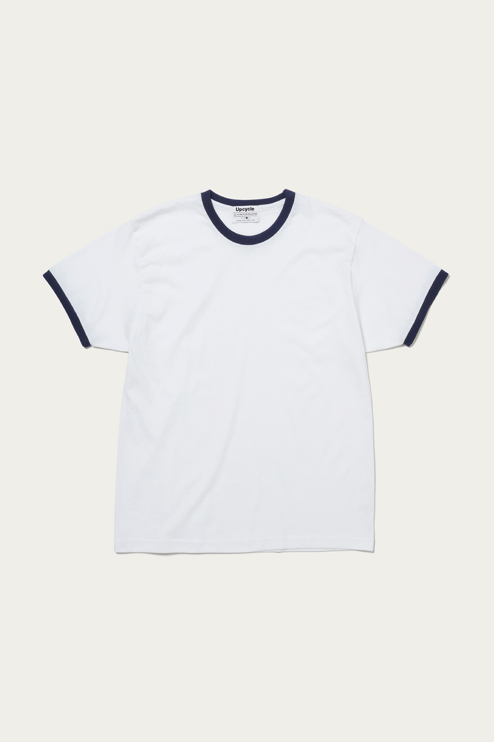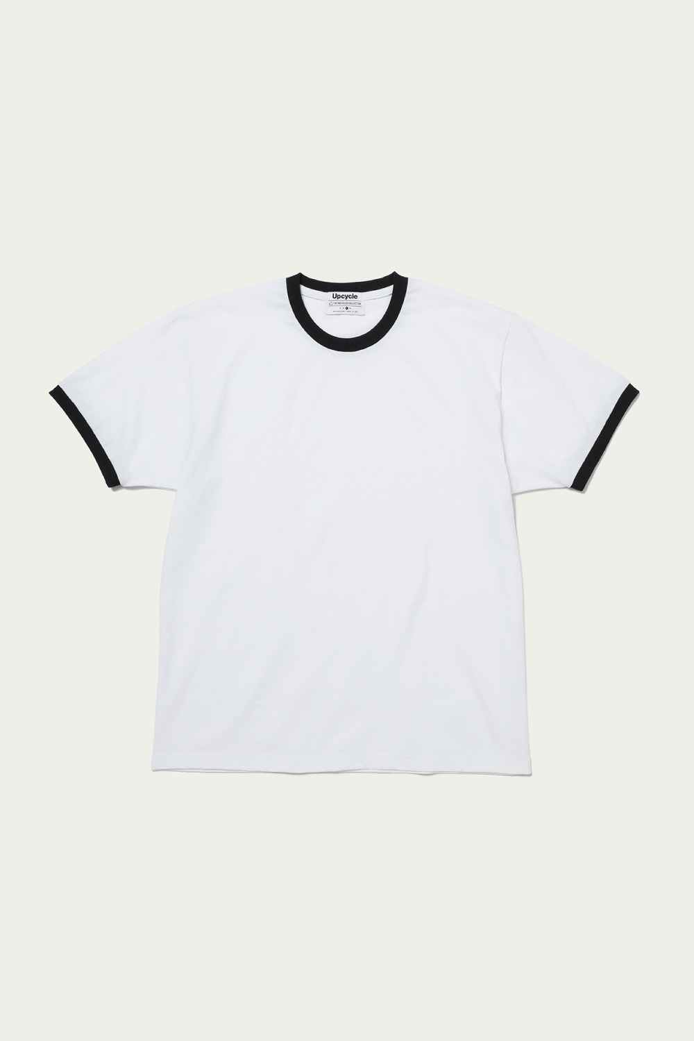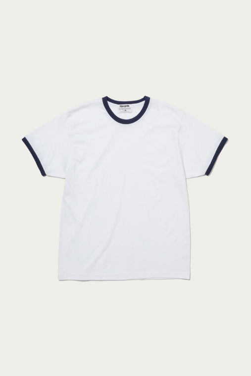 〈UPCYCLE〉はリサイクルTシャツを中心とした商品展開で始まった米国ブランド。製造工程で生じる生地のロスや廃棄などを最小限に留めたものづくりを徹底していて、このTシャツはリサイクルコットンとペットボトルから再生されたポリエステル繊維でできています。オールドスクールなリンガーTというのが、今またフレッシュです。