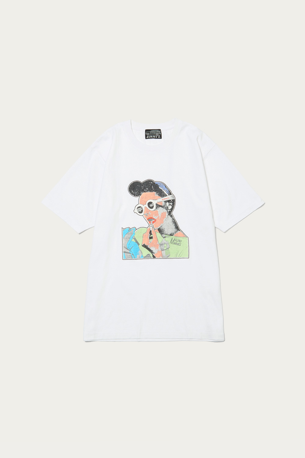 1984年、米国西海岸でアーティストのジム・ザンガーが立ち上げた〈JIMMY’S〉は、スケートボードやサーフカルチャーの発展を支えてきた伝説的ブランド。そんな背景に敬意を表し、〈BEAUTY&YOUTH〉では過去のグラフィックに再度焦点を当て、ゆったりとしたオリジナルボディに載せる形で別注・復刻。洗いをかけて、こなれ感を強めています。