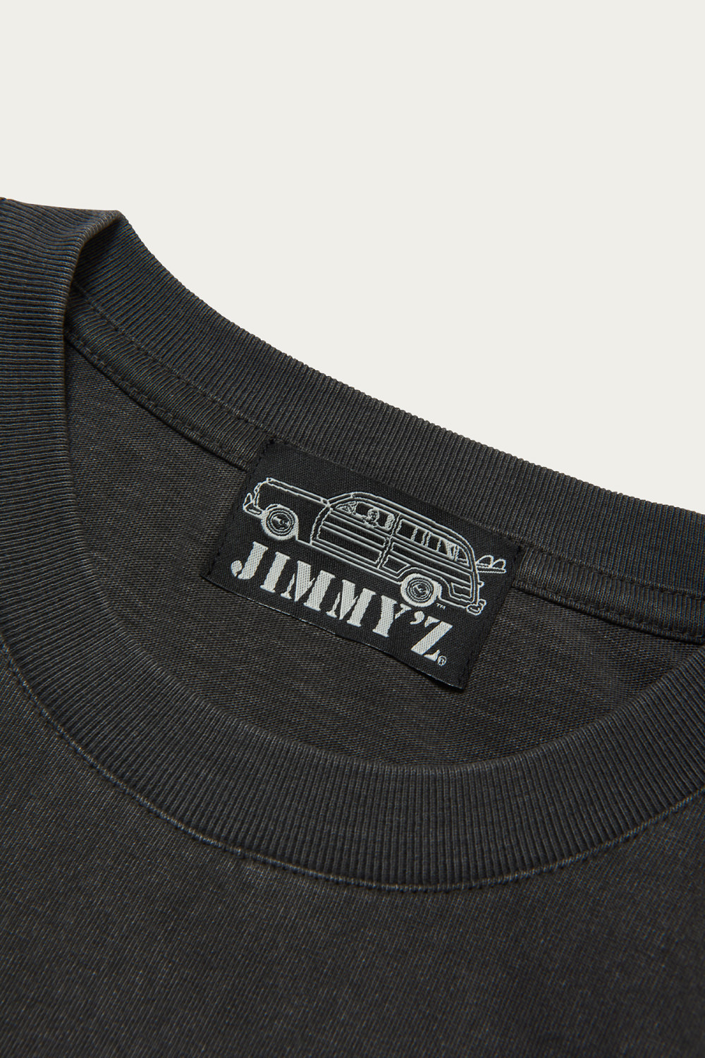 1984年、米国西海岸でアーティストのジム・ザンガーが立ち上げた〈JIMMY’S〉は、スケートボードやサーフカルチャーの発展を支えてきた伝説的ブランド。そんな背景に敬意を表し、〈BEAUTY&YOUTH〉では過去のグラフィックに再度焦点を当て、ゆったりとしたオリジナルボディに載せる形で別注・復刻。洗いをかけて、こなれ感を強めています。
