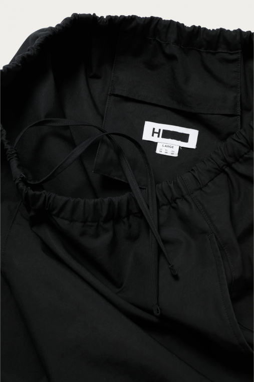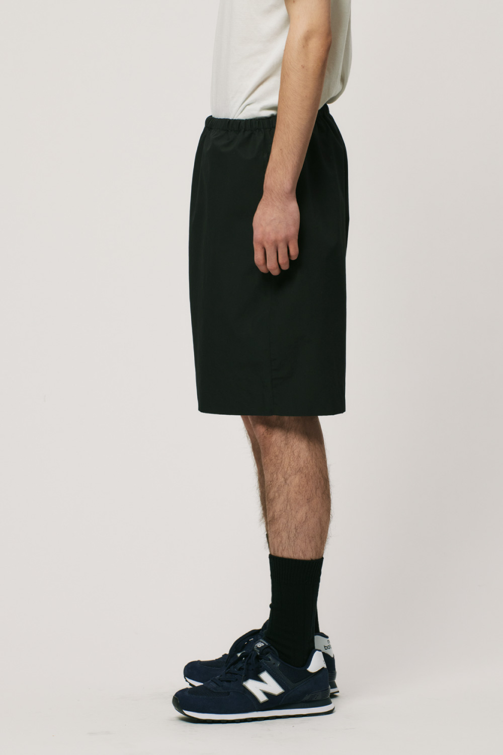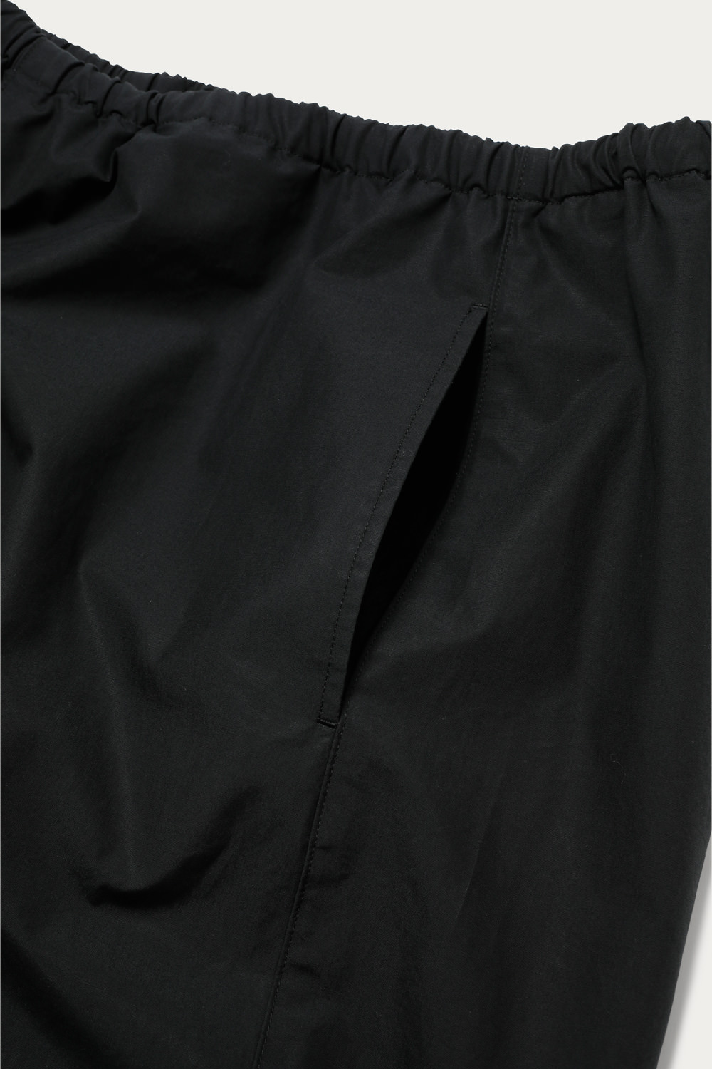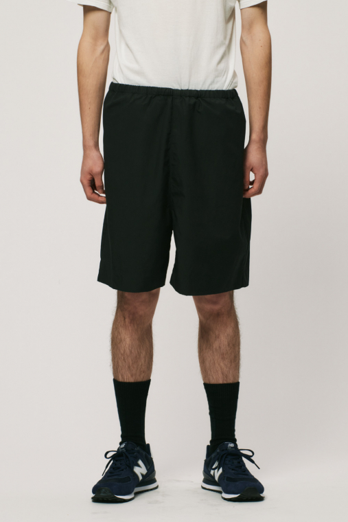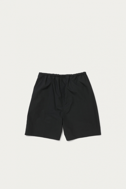 二重織で作られた適度なハリと高級感のあるタイプライター生地を使用することでモードテイストな佇まいを持つイージーショーツ。ディテールを極力削ぎ落したミニマルなデザインが特徴です。