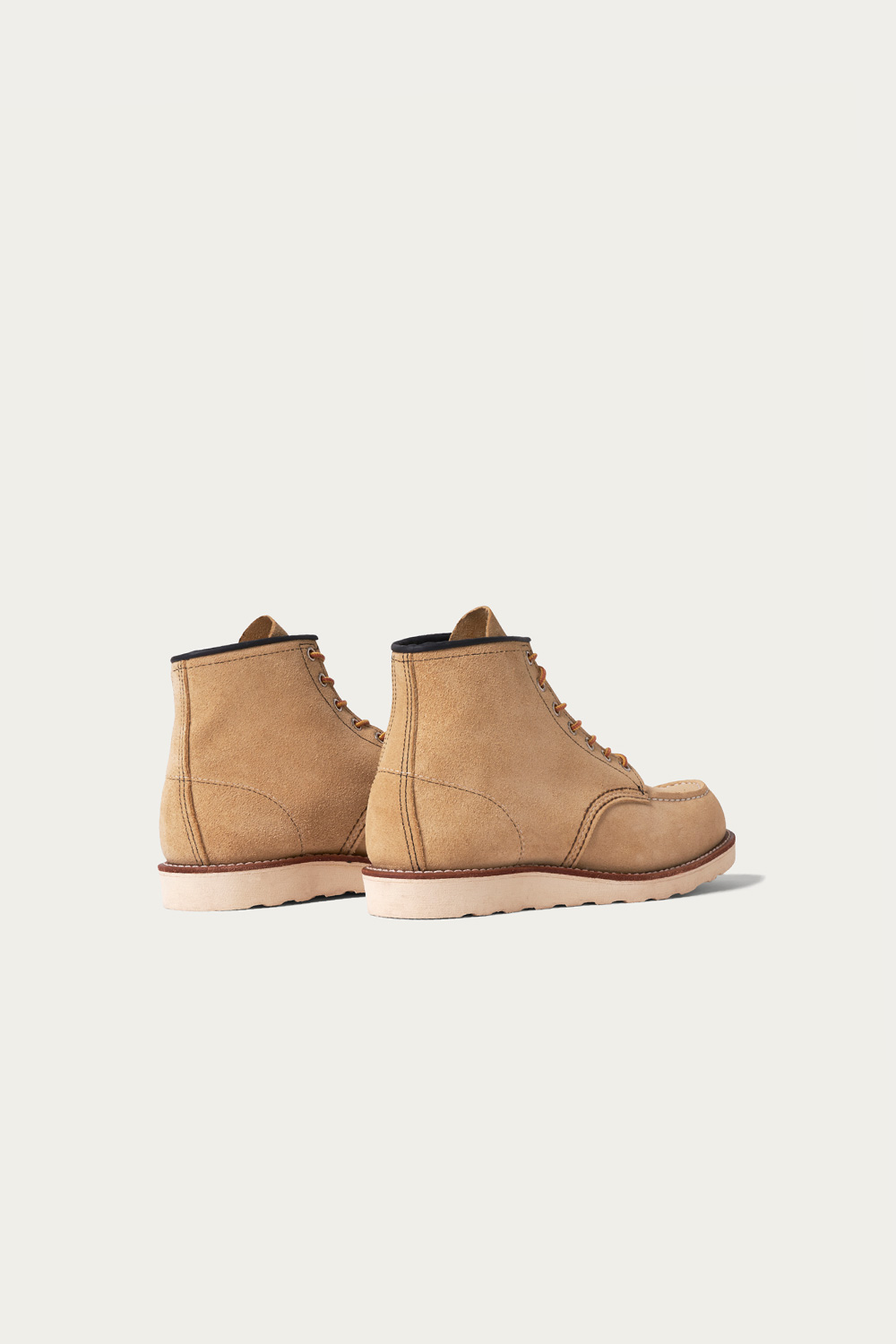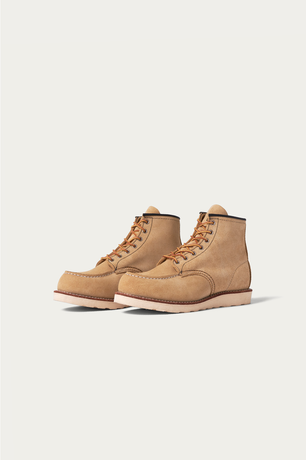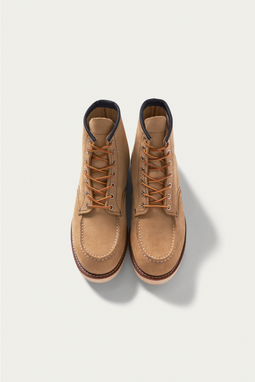 〈RED WING〉の「8173」は、モカシンタイプのつま先とクッション性に富むトラクショントレッド・ソール、微起毛感のあるベージュのラフアウトレザーを組み合わせた6インチブーツ。1989 年の誕生以来、歩きやすさと上品な表情を兼ね備えたモデルとしてロングセラーを誇っており、一足は持っておきたい永遠の定番と言えます。