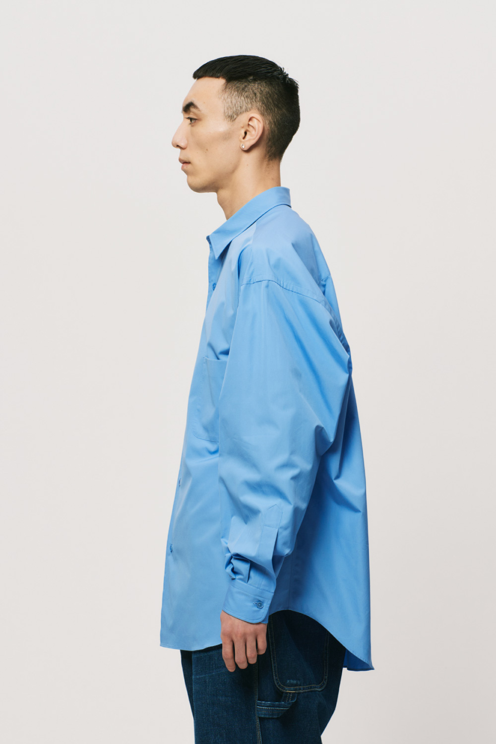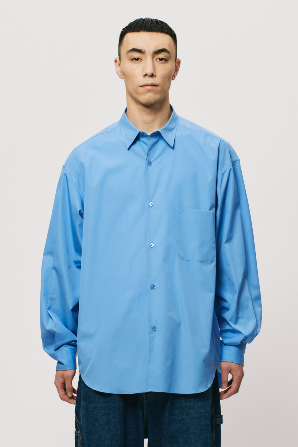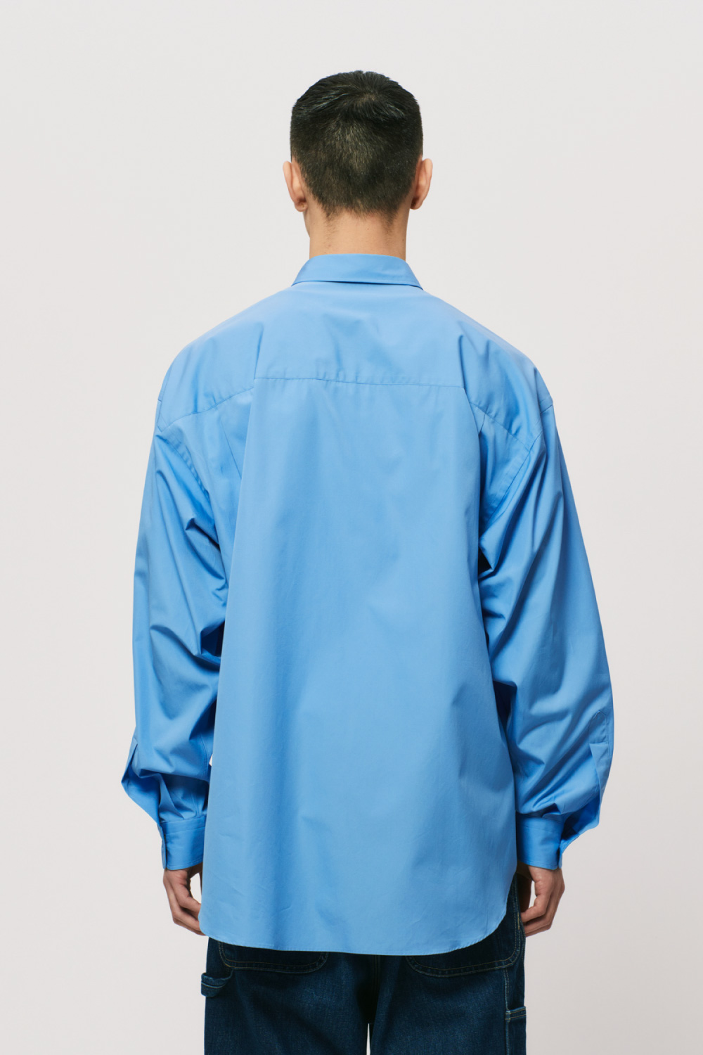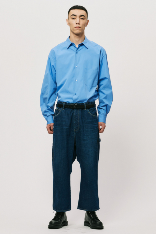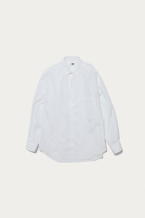Hの定番アイテムであるバルーンシルエットシャツ。THOMAS MASONの120/2番手の上質なブロードクロスを使用しています。上品な光沢感があり、エレガントさを感じさせる一枚です。