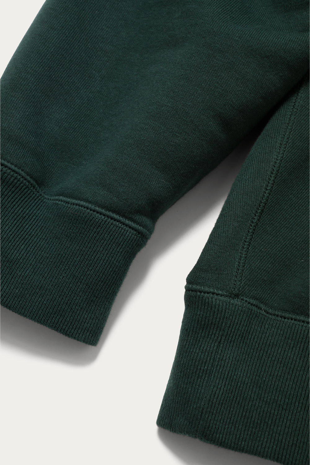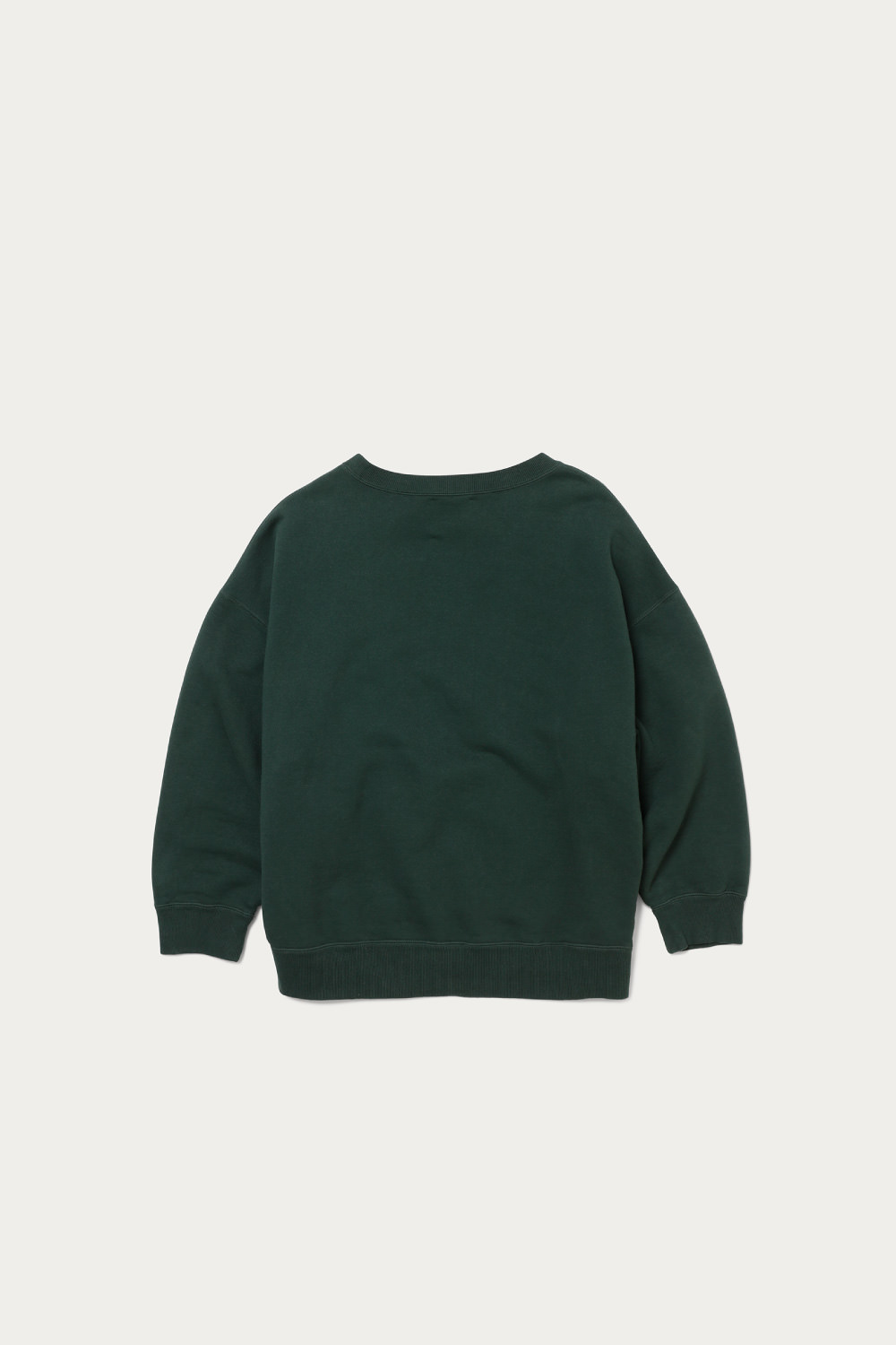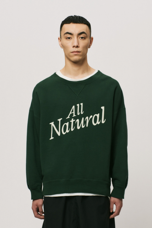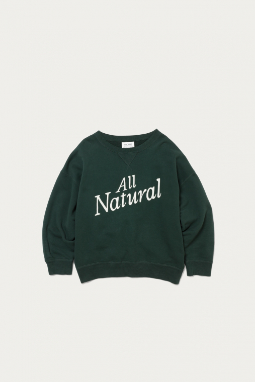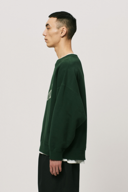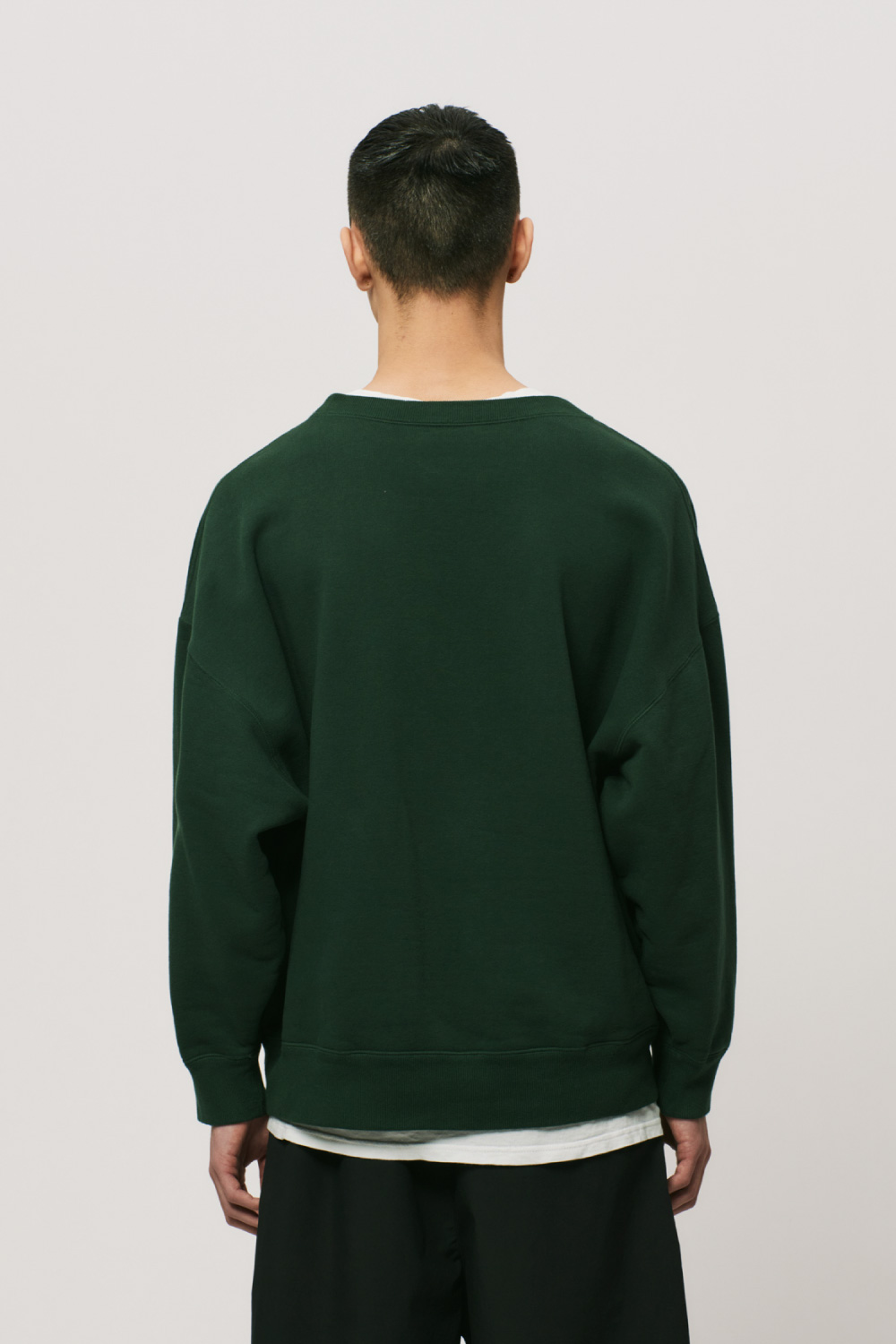 日本で数台しか存在しない吊り機で編み上げたスウェットシャツです。特別なループの飛ばし方をしているため、1日に8m程しか編めない少量生産ながらデザイナーのこわだりが詰まった一着。肌ざわりが良く、着こんでいくうちに徐々に柔らかくなり身体に馴染んでいく仕上がりになっています。