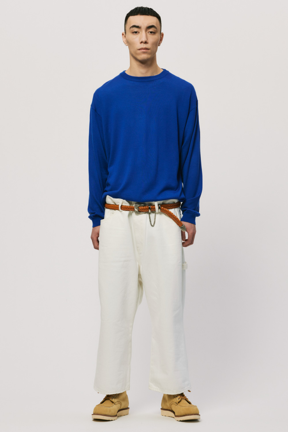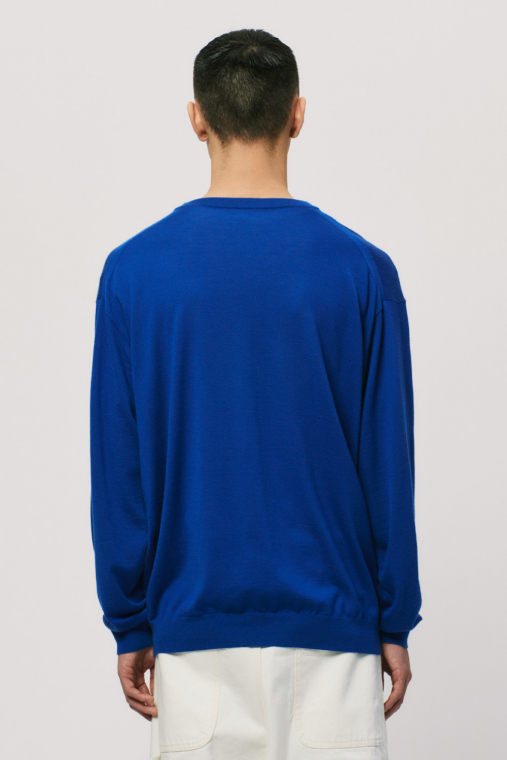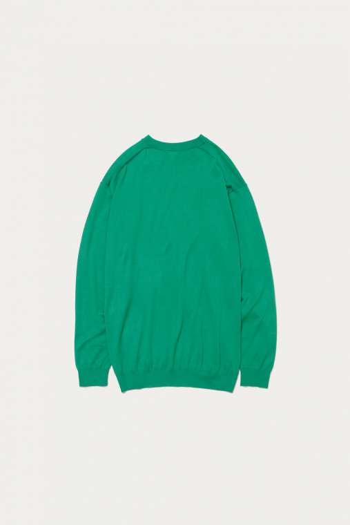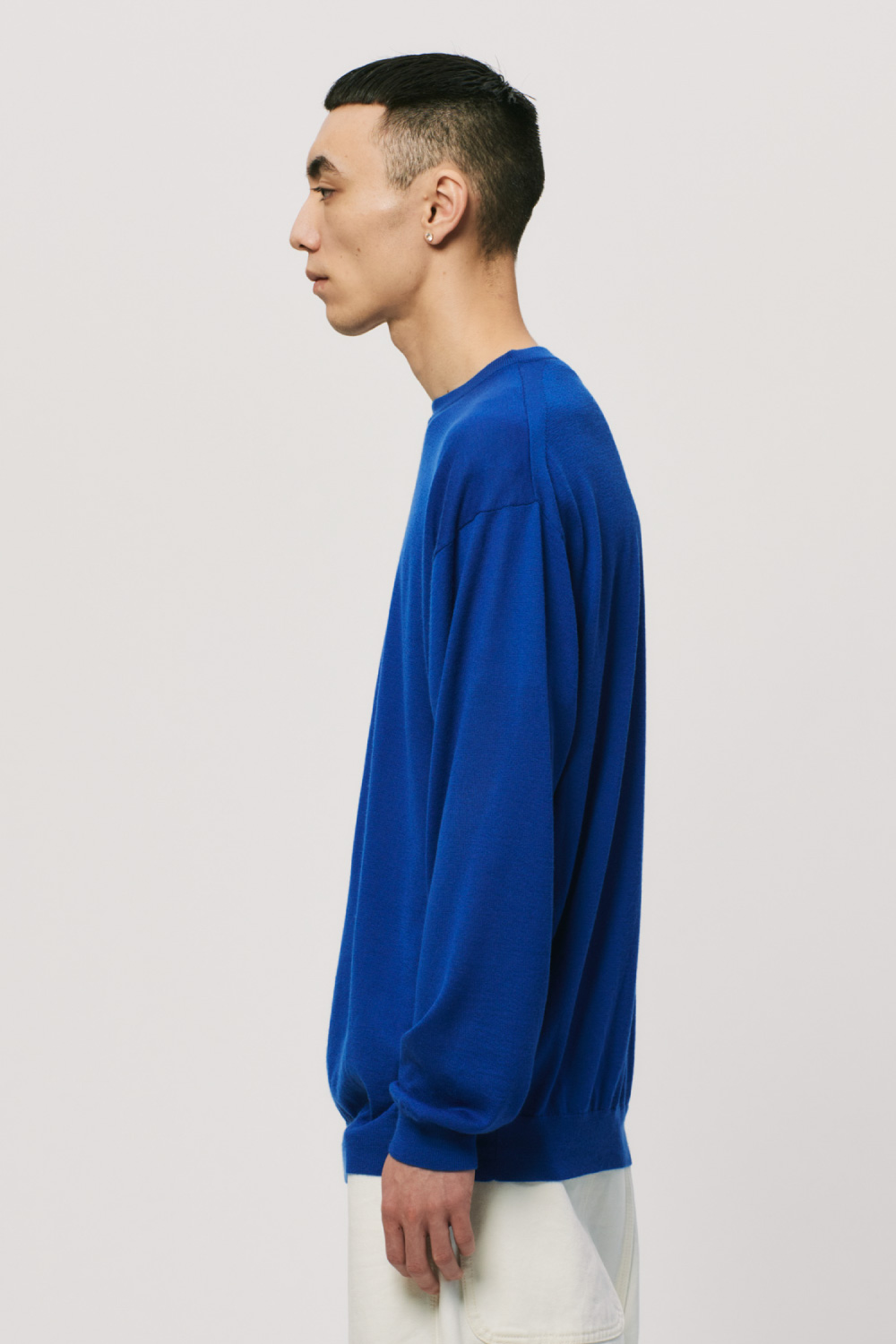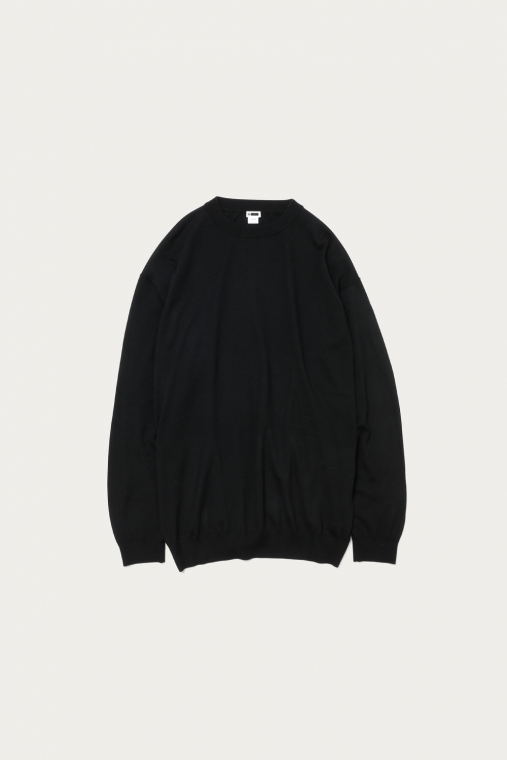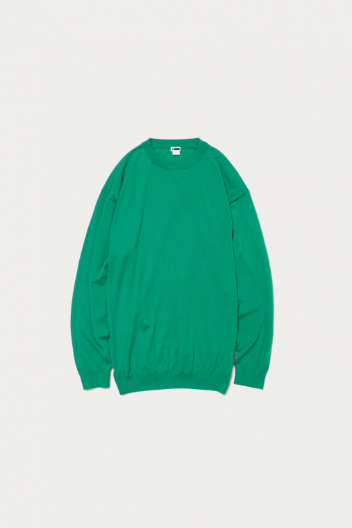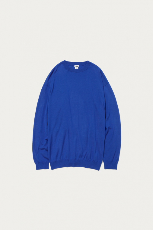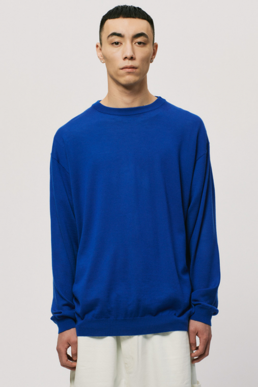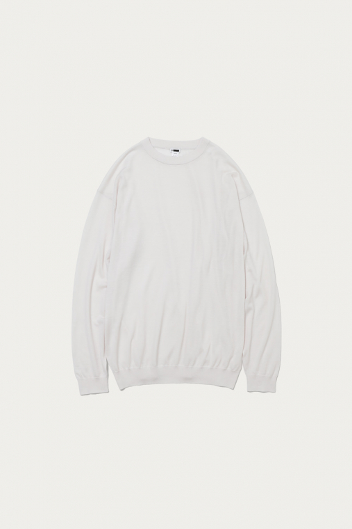 カシミヤの質感をキープしつつ、オールシーズン着用できるように毛羽感を極力抑え、クリアに仕上げたファインゲージのカシミヤニット。春から秋にかけてショーツとの合わせもおすすめです。ルーズシルエットボディをリブで絞ったバルーンシルエットが特徴です。