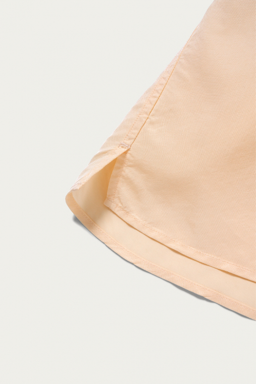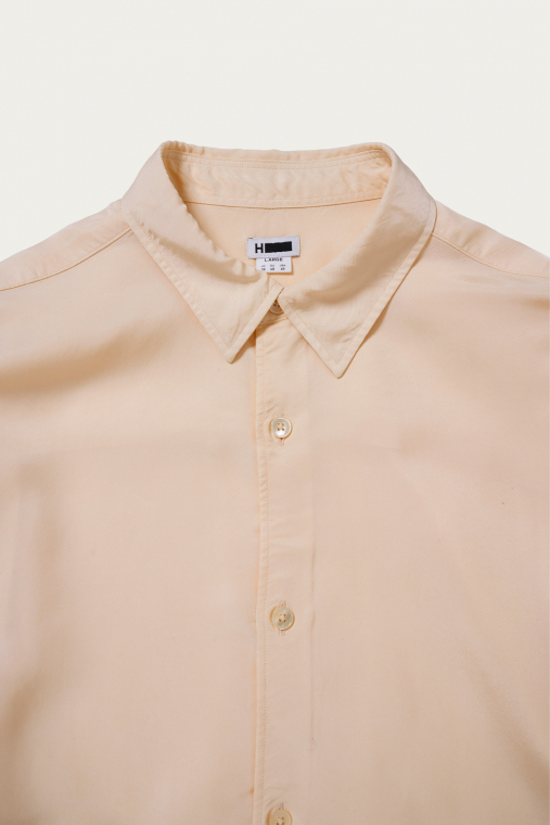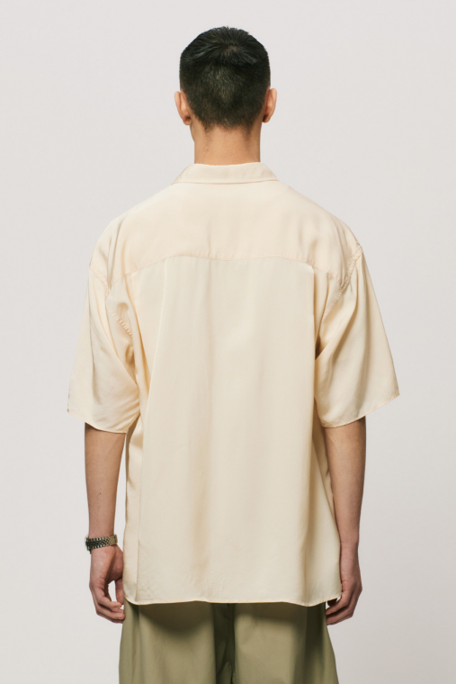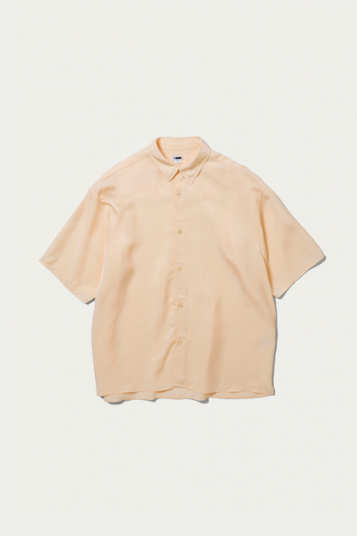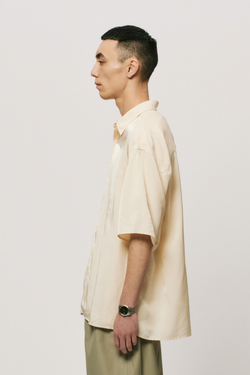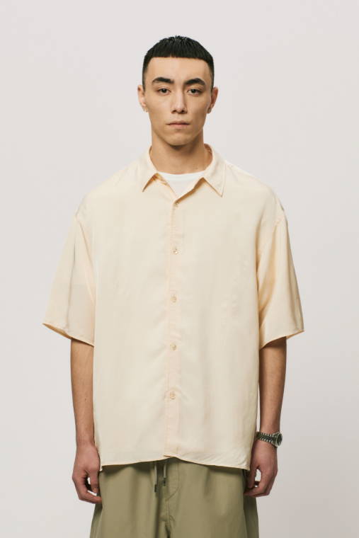 上品な雰囲気のある光沢感とドレープが特徴のヴィスコースツイルシャツ。ウィメンズの着古したシャツようなイメージでヴィンテージ加工を施した表面の仕上がりがポイントです。